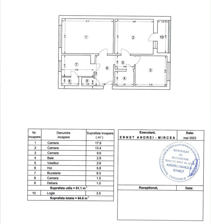 Suprafața utilă 61 m²