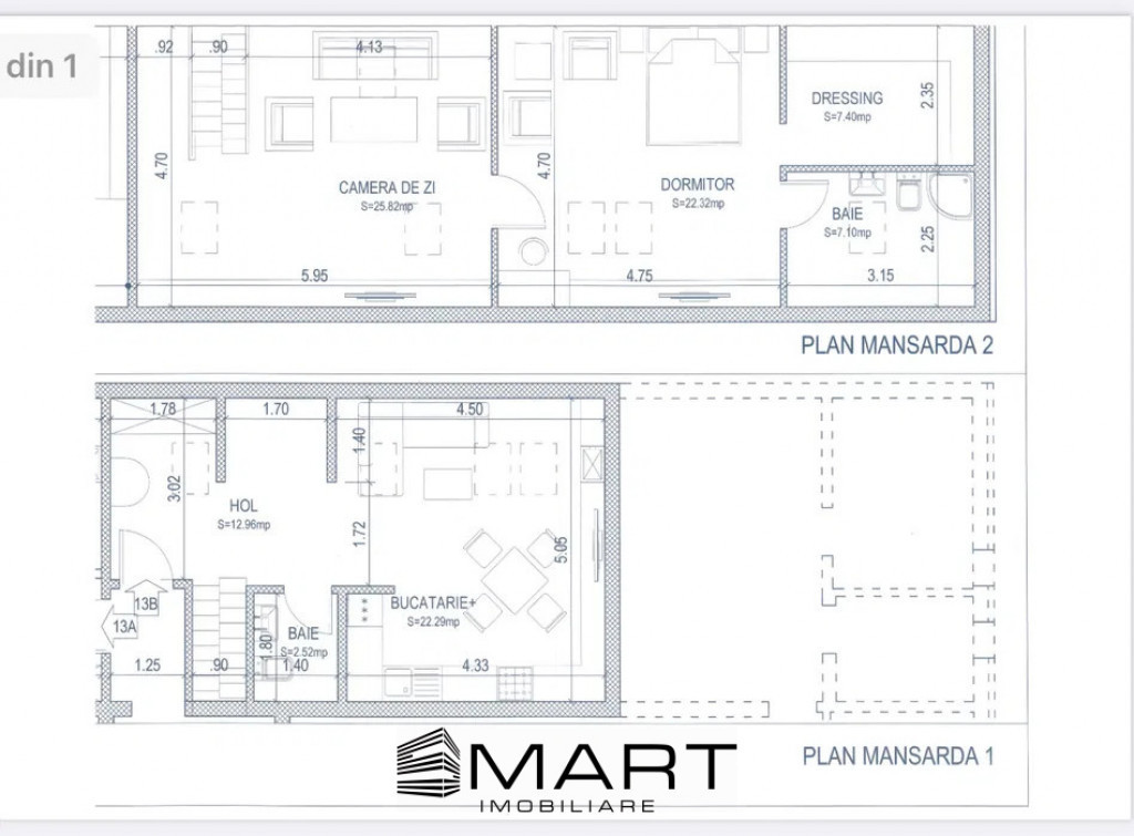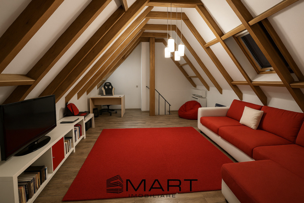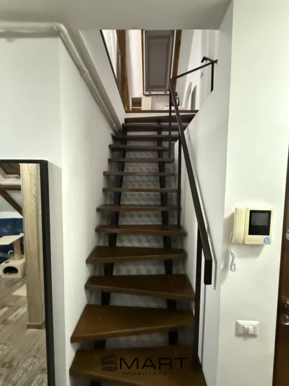 Smart Imobiliare va ofera spre vanzare apartament spatios de 104 mp utili, impartit pe doua niveluri la mansarda. Primul nivel are hol , baie de servici living cu bucătărie și balcon.Etajul are o camera de zi, dormitor matrimonial cu baie și dressing .Apartamentul dispune de loc de parcare. Se afla intr-o zona cu multe facilitati; supermarket, centru comercial, scoala generala,liceu,gradinita si mijloace de transport in comun. Pentru mai multe detalii,va rugam contactati agentul si specificati id-ul anuntului:P16442 Id intern: P16442