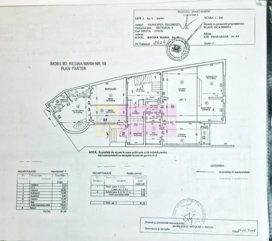 Apartament 3 camere | Mitropolie – Unirii | 80 mp utili | bloc cu 7 apartamente din 2006 | curte, liniște Este un apartament deosebit, situat în zona Mitropolie – Bulevardul Regina Maria, la doar 10 minute de mers pe jos de Piața Unirii . Apartamentul se află într-un bloc boutique construit în 2006, solid, din cărămidă, cu doar 7 apartamente în total – un imobil elegant, liniștit și bine întreținut, cu intretinere mica (nu exista lift, iar terasa apartine celor 2 locatari de la etajul 2). Este singurul apartament situat la parterul înalt al clădirii (echivalent etaj 1 dinspre spatele imobilului), ceea ce îi oferă intimitate, liniște și acces facil, fără vecini direcți pe același nivel, fara vecini direnti n stanga sau dreapta, care sa deranjeze. Detalii apartament: • Suprafață utilă: ~80 mp (81.5 mp cu balcon) • Compartimentare actuală: 2 camere foarte spațioase, 2 băi (una foarte spatioasa, una de se serviciu) • Configurație ideală atât pentru birou / sediu de firmă, cât și pentru locuință • Living generos, tip open-space, cu 3 trepte ce duc spre o zonă luminoasă, ideală pentru dining, birou, bibliotecă sau chiar un jacuzzi decorativ • Dormitor / birou secundar cu baie proprie si un mic balcon • Centrală termică proprie, costuri mici de întreținere • Finisaje de calitate, renovare în 2020 • Orientare spre spate – foarte liniștit, deși imobilul este stradal, cu un mic balcon • Mică curte în față, acces facil • Subsol tehnic (fără boxă proprie) • Documentație completă a construcției (suntem primul cumparator) • Fără lift si terasa comuna, costuri minime pe întreținere Avantaje si utilizări posibile • Pretabil pentru cabinete de avocatură, notariat, executori judecătorești, firme de turism, consultanță, imobiliare, IT sau servicii corporate – spațiu cu vizibilitate stradală și acces ușor pentru public • Ideal pentru cupluri sau persoane care caută o locuință ultracentrală, spațioasă și liniștită, într-un bloc mic, cu vecini de calitate și trafic redus, dar cu spatiu frumos impartit (living-ul are o forma deosebita, cu o zona delimitata cu trepte, langa fereastra) • Posibilitate revenire la 3 camere, desi apartamentul arata mult mai bine asa (noi l-am solicitat asa, din perioada constructiei, desi el apare in acte ca 3 camere). Alte detalii utile • Vecini civilizați – o parte din apartamente sunt locuințe de serviciu ale unei bănci, utilizate rar • În total, doar 4 apartamente locuite permanent → liniște și confort ridicat • Acces facil către Unirii, Mitropolie, Piața Constituției, Calea Șerban Vodă sau orice zona de centru • Se pot da indicatii de acces cu usurinta, fiind stradal. In apropiere: Mega Image, Coffee shop, restaurante, farmacii. Un apartament unic în zona Mitropolie – Unirii, într-un imobil boutique, ideal pentru locuire, birou sau investiție. Spațios, luminos, cu compartimentare flexibilă și randament dovedit. Liniștea unui mic imobil privat, dar la 10 minute de mers pe jos de centrul Bucureștiului sau 2 minute cu masina.