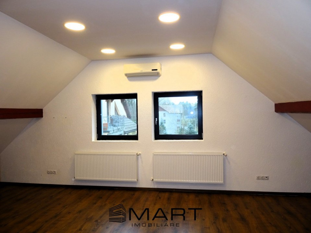 Smart imobiliare inchiriaza apartament situat in apropierea Parcului Sub Arini si a Padurii Dumbrava, intr-o zona retrasa de agitatia orasului. Apartamentul se afla la mansarda unei vile generoase, are o suprafata utila de 121mp si este alcatuit din camera de zi (38 mp), trei dormitoare, baie cu dus si aerisire directa, bucatarie, hol. Fiind de curand renovat, spatiul este intr-o stare tehnica excelenta. Imobilul dispune de centrala proprie pentru incalzire si apa calda menajera, parchet laminat, gresie si faianta, aer conditionat. Intreaga cladire este foarte bine izolata termic (vata bazaltica de 20 cm) si dotata cu binale de calitate superioara, corpuri de iluminat cu LED, fapt din care rezulta costuri de intretinere foarte mici, intreaga incinta este supravegheata video, accesul in cladire se face pe baza de cartela magnetica. Imobilul este partial mobilat, avand bucataria complet mobilata si utilata: plita si cuptor electrice, combina frigorifica si masina de spalat rufe, toate noi. Apartamentul dispune de infrastructura pentru cablu TV si Internet, abonamentele sunt optionale. Imobilul dispune de un loc de parcare in curte. Pentru detalii suplimentare si stabilirea unei vizionari, precizati ca ati vazut anuntul cu ID: P15135 Id intern: P15135