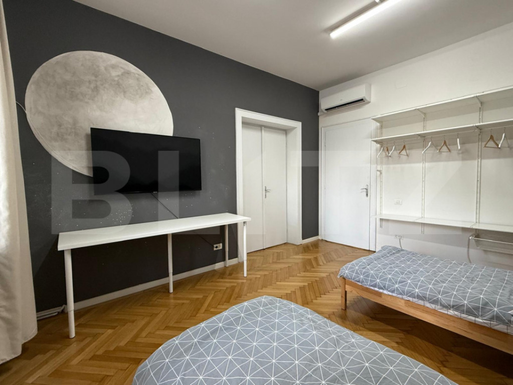 Blitz vă invită să descoperiți un apartament cu adevărat special, într-o clădire istorică circulară, rar întâlnită, unde eleganța trecutului se îmbină armonios cu confortul contemporan. Spațiul generos și luminos este compartimentat inteligent, oferind: -2 dormitoare primitoare -living și dining cu atmosferă caldă și rafinată -bucătărie complet utilată, cu camară dedicată -spălătorie separată -1 baie completă + 1 baie de serviciu -2 terase ample, perfecte pentru relaxare în aer liber -boxă proprie, ideală pentru depozitare Confortul este garantat de: -aer condiționat în toate încăperile (chiar și pe terasă!) -centrală termică pe gaz -mobilier și electrocasnice premium Datorită caracterului său unic, apartamentul poate fi transformat cu ușurință într-un cabinet elegant, studio de yoga plin de energie, spațiu pentru închiriere turistică sau reședința ideală pentru cei care apreciază distincția și farmecul unei clădiri istorice. Un apartament cu personalitate, într-o clădire aparte – o oportunitate rară pe piață. Cod ofertă / ID BLITZ: P154425 Id intern: P154425