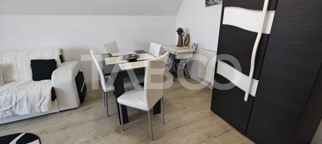 Apartament 4 camere de vanzare, decomandat, 98 mp, zona Tilisca, Sibiu. Amplasat intr-o zona linistita, cu priveliste panoramica intreptata catre spectacolul oferit de aterizarile si decolarilor avioanelor, acest apartament distribuit pe 2 nivele este liber de sarcini si se poate achizitiona imediat. Avantaje majore ale acestui apartament: • Un loc de parcare inclus in pret; • Boxa la subsol; • Locatie ferita de aglomeratie • Priveliste panoramica. TABOO Imobiliare propune un apartament de vanzare cu 4 camere, decomandat, distribut pe 2 nivele, situat in localitatea Sibiu, zona Tilisca, aflat la etajul 3 intr-un imobil tip bloc cu regim de inaltime pe Parter + 3 Etaje; anul constructiei 2016, structura caramida. Suprafata utila este de 98 mp + 2 balcon insumand 9 mp. Apartamentul este structurat astfel: La parter: • Hol; • Living cu balcon; • Dormitor; • Bucatarie; • Baie; La etaj: • Dormitor cu balcon; • Dormitor; • Baie; • Hol. Finisajele interioare sunt clasice: • Usa intrare: metal; • Usi interioare: lemn; • Tamplarie ferestre: pvc, termopan; • Pereti: vopsea lavabila, faianta; • Podele: parchet, gresie. Utilitati si dotari: • Bucatarie: mobilata, utilata; • Mobilat: complet; • Utilitati: curent electric, apa, canalizare, gaz, catv, fibra optica; • Izolatii: exterior, bloc izolat termic; • Contorizare: apometre, contor gaz, contor curent electric, contorizare separata; • Caracteristici bloc: interfon, acoperis, curte comuna. Apartamentul se vinde mobilat si utilat cu: aragaz, cuptor, hota, masina de spalat rufe, frigider cu congelator si cuptor cu microunde. Incalzirea se realizeaza prin centrala proprie cu calorifere. Se accepta ca si modalitate de plata surse proprii sau credit bancar. Pret: 169.900€ Cod ofertă / ID: P24987 Sună-ne acum la 0369.822.820 și află detalii despre această proprietate de vanzare din Sibiu, dar și despre alte proprietăți potrivite pentru tine. Informatii speciale: 1. Descarcă aplicația pe mobilul tau "TABOO Imobiliare" din Apple Store, Google Play sau Huawei AppGallery pentru a afla instantaneu noile proprietăți care intră pe piață. 2. Dacă ai o proprietate pe care vrei să o vinzi sau să o închiriezi, suntem aici pentru tine! Contactează-ne pentru o evaluare gratuită fără obligații și vei descoperi avantajele de a lucra cu o echipă dedicată și experimentată. 3. Dacă vrei sa incepi o cariera de agent imobiliar, suna la 0369.822.820 si programeaza o intalnire pentru a afla toate beneficiile si avantajele. Intră pe TABOO.ro și descoperă cele mai recente oferte, actualizate zilnic. Anunt actualizat in 4 decembrie 2025. Id intern: P24987