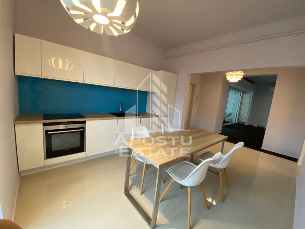 APOSTU ESTATE are plăcerea de a vă propune spre închiriere un apartament spațios cu 4 camere, situat în zona Complexului Studențesc, una dintre cele mai dinamice și apreciate zone din Timișoara. Apartamentul dispune de o suprafață utilă de 120 mp și este compartimentat astfel: living open-space cu bucătărie modernă, 3 dormitoare luminoase, 2 băi, hol generos de acces, terasă ideală pentru relaxare. Ideal pentru o familie Vecinătăți de interes: Hotel Boavista, Restaurant Sabres, Banu Sport, Supermarket Profi, Acces facil la mijloace de transport în comun. Condiții de închiriere: Preț chirie: 750 euro/lună Garanție: 750 euro Se acceptă animale de companie (animale de talie mica) Apartamentul reprezintă alegerea perfectă pentru cei care își doresc un spațiu generos, confort și proximitate față de principalele puncte de interes din oraș. Vă așteptăm cu drag la o vizionare!