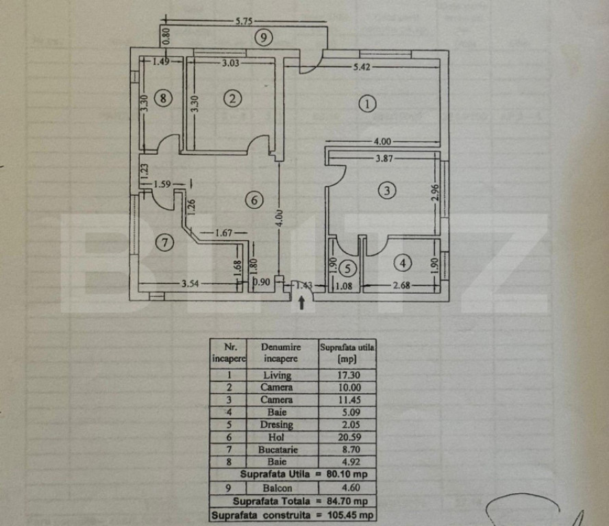 Blitz propune spre vânzare un apartament luminos și bine compartimentat, 4 camere + dependințe, decomandat, situat la parter în una dintre cele mai bine cotate zone din Sectorul 1, cu o suprafață utilă de 80 mp și o suprafață totală de 84,7 mp, ideal pentru o familie sau pentru cei care își doresc un cămin confortabil într-o zonă liniștită, dar foarte bine conectată cu restul orașului. -Locuința este formată din: -Living generos – 17,30 mp -Două dormitoare confortabile (10,00 mp și 11,45 mp) -2 băi -Bucătărie spațioasă – 8,70 mp -Hol foarte mare – 20,59 mp, ce oferă multiple posibilități de amenajare -Dressing dedicat -Balcon de 4,60 mp Compartimentarea este complet decomandată, ceea ce oferă intimitate și o circulație eficientă între încăperi. ✅ Utilități și dotări -Alimentare completă la utilități: apă, gaze, electricitate, canalizare -centrala proprie -Acces facil la fibră optică pentru internet de mare vitez -Clădire bine întreținută, cu vecini civilizați ✅ Avantajele zonei -Apartamentul este situat într-o zonă foarte bine cotată a Sectorului 1, cunoscută pentru: -Acces rapid la mijloace de transport în comun -Apropiere de școli, grădinițe și licee de renume -Magazine, supermarketuri, farmacii, piețe în imediata vecinătate -Zone verzi și parcuri aflate la câteva minute -Cartier liniștit, cu trafic redus și multă vegetație Este o locuință potrivită atât pentru rezidență, cât și pentru investiție, având un potențial excelent de amenajare în funcție de preferințe. Cod ofertă / ID BLITZ: P157359 Id intern: P157359