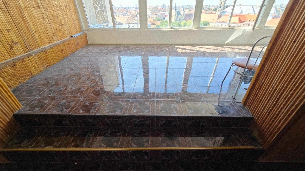Apartament 4 camere de vanzare, central, blvd. Magheru Cora Proiect Imobiliare va propune spre vanzare apartament cu 4 camere, ce iese in evidenta atat prin amplasarea acestuia cat si prin dubla orientare si panorama rezultata din dubla orientare respectiv rasarit si vest sau mai exact dealul Ciuperca si zona centrala a municipiului Oradea, blvd. Gen. Gh. Magheru oferind avantajul accesului facil si rapid in zonele principale de interes ale orasului cat si prin generozitatea spatiului si posibilitatea renovarii lui dupa bunul gust al viitorului proprietar. Apartamentul este de tip M, apartament decomandat de 4 camere si transformat in 3 , situat la etajul 8 , al unui bloc din zidarie caramida +BCA, cu ascensor, orientare Rasarit– Vest, cu suprafata generoasa construita de 150 mp, suprafata utila de 125 mp, compartimentare: hol de intrare cu o deschidere spectaculoasa ca si suprafata si intrari directe in camera de zi, bucatarie cu camara de alimente, dormitor, (toate cu priveliste spre dealul Ciuperca), doua bai, respectiv una cu dus si una cu cada, doua dormitoare din care unul cu balcon si o terasa inchisa cu spatii vitrate mari de aproximativ 25 mp, toate acestea avand orientare blvd. Magheru/zona centrala. Apartamentul are nevoie de renovare completa, dar de retinut si foarte important este configuratia acestuia si modificarile ce pot fi aduse in urma unor renovari si prin prisma orientarii, a constructiei pe structura de cadre de beton si peretii de zidarie caramida si BCA. Pozitia lui ultracentrala, dubla sa orientare, panorama spectaculoasa, luminozitatea, infrastructura excelenta, generozitatea de spatiu, compartimentarea eficienta precum si posibilitatea de reamenajare fac din acest apartament o locatie ce merita a fi vizionata! Pretul de vanzare este de: 153 000 euro. Agentia noastra nu percepe comision de la cumparator! Comision intotdeauna 0%! Pentru informatii si programari va rugam sa ma contactati la nr. de telefon: 0745782494 – Junc Ovidiu.