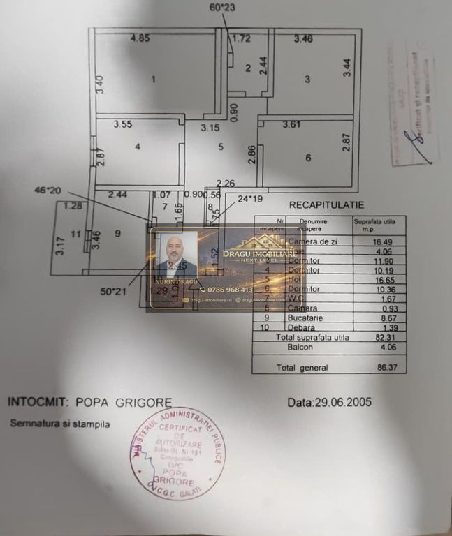 Vă prezentăm un apartament cu 4 camere, complet decomandat, situat la parterul unui bloc cu 4 etaje din zona Industrială din Tecuci, în imediata apropiere a bisericii. Locuința are o suprafață utilă de 86.37 mp și a fost renovată integral de la zero, fiind regândită și modernizată complet cu materiale de calitate superioară, fără compromisuri în ceea ce privește execuția sau finisajele. Apartamentul a fost golit complet până la structura de bază, fiind refăcute toate etapele de construcție: îndepărtarea tâmplăriei vechi, refacerea pereților, spargerea și turnarea unei șape noi în întreg apartamentul, reconstruirea balconului și recompartimentarea spațiului pentru o funcționalitate mai bună. Compartimentare Locuința este compusă din: - living generos - 3 dormitoare - bucătărie foarte spațioasă, open-space, cu acces către balcon - spațiu dedicat pentru dressing - 2 băi (toaletă și zonă de duș walk-in) - balcon cu spațiu dedicat pentru gătit Apartamentul a fost renovat integral cu materiale de calitate superioară, fiind realizate următoarele îmbunătățiri: - instalație electrică complet nouă, proiectată pentru nevoile actuale - instalații sanitare și de încălzire complet refăcute, îngropate în șapă, fără conducte vizibile - băi modernizate, cu faianță format mare (120x60), sisteme Geberit, duș walk-in și instalații noi - pereți refăcuți integral, cu două straturi de adeziv, trei straturi de glet și trei straturi de lavabilă - plafoane din rigips izolate cu vată minerală, pentru un confort termic și acustic superior - gresie tip parchet, montată profesional - uși interioare din lemn natural, finisaj alb - tâmplărie PVC Salamander cu 3 rânduri de sticlă, pervaze din marmură la interior și aluminiu la exterior La exterior, apartamentul beneficiază de izolație de 10 cm, glafuri refăcute și spații verzi în fața și în spatele apartamentului, delimitate cu gard metalic, oferind un plus de intimitate și posibilitatea amenajării unei mici grădini. Alte informații importante Apartamentul a fost renovat pentru uz personal, fără economie la materiale sau manoperă, multe dintre produsele utilizate fiind importate din Belgia. Avantaje zonă Zona oferă acces rapid către toate facilitățile necesare unui trai confortabil: - magazine și marketuri - grădinițe - școli - clinică medicală Această proprietate reprezintă o alegere excelentă pentru cei care își doresc un apartament spațios, complet renovat, cu finisaje premium și o compartimentare modernă.