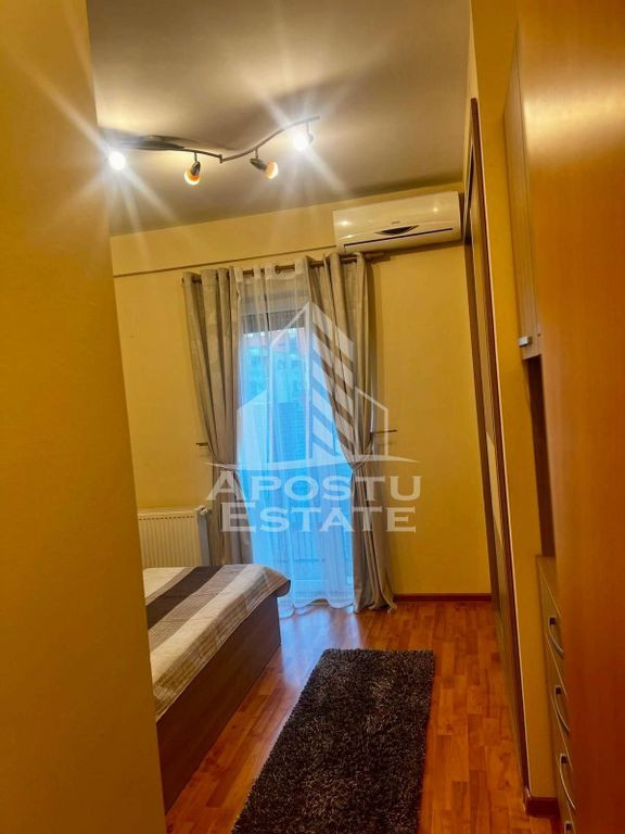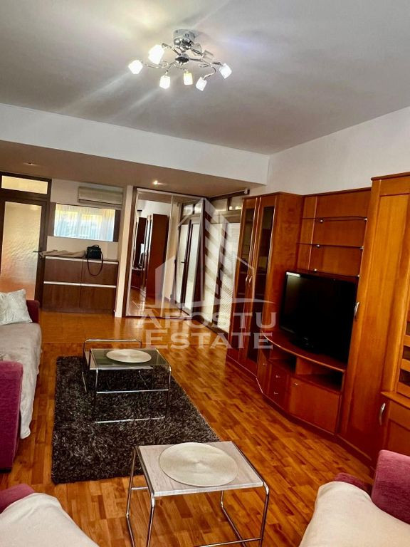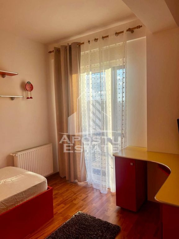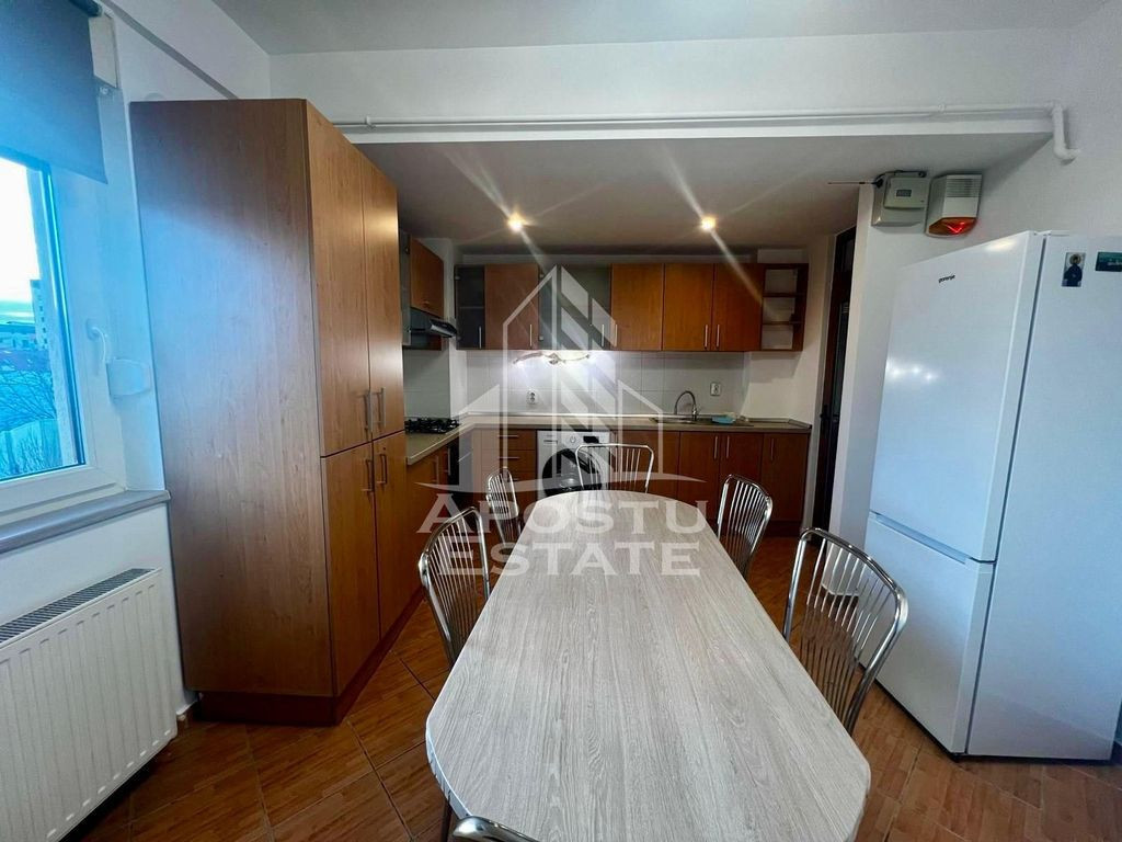 APOSTU ESTATE va propune spre inchiriere un apartament deosebit, intr-o zona linistita cu 4 camere, 2 bai, loc de parcare zona deschisa inclus in pret + loc de parcare subteran contra cost, centrala proprie, situat la etajul 3/5, cu lift in zona Aradului. Apartamentul a fost recent zugravit si igenizat. Imobilul are o suprafata utila de 100 mp+4 mp terasa si este compartimentat astfel: - hol de acces mobilat - bucatarie inchisa complet mobilata si utilata - living room luminos si spatios mobilat, Tv - dormitor matrimonial cu dressing, Tv si baie proprie cu cada - dormitor secundar mobilat, cu canapea extensibila, dressing,birou,iesire spre terasa - camera cu pat, birou,dressing si iesire spre terasa - baie cu dus si sistem de ventilatie Confortul termic se realizeaza prin intermediul centralei proprii, incalzirea imobilului fiind realizata prin calorifere si prin intermediul aerului conditionat. Vecinatati: - Iulius mall la 14 min cu masina - Magazine - Transport in comun Nu se accepta animale de companie. Se percepe contravaloarea a 2 garantii cu posibiilitatea de achitare in 2 transe. Disponibil imediat. Va asteptam cu drag la o vizionare! Id intern:CP2266954