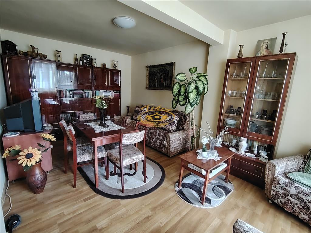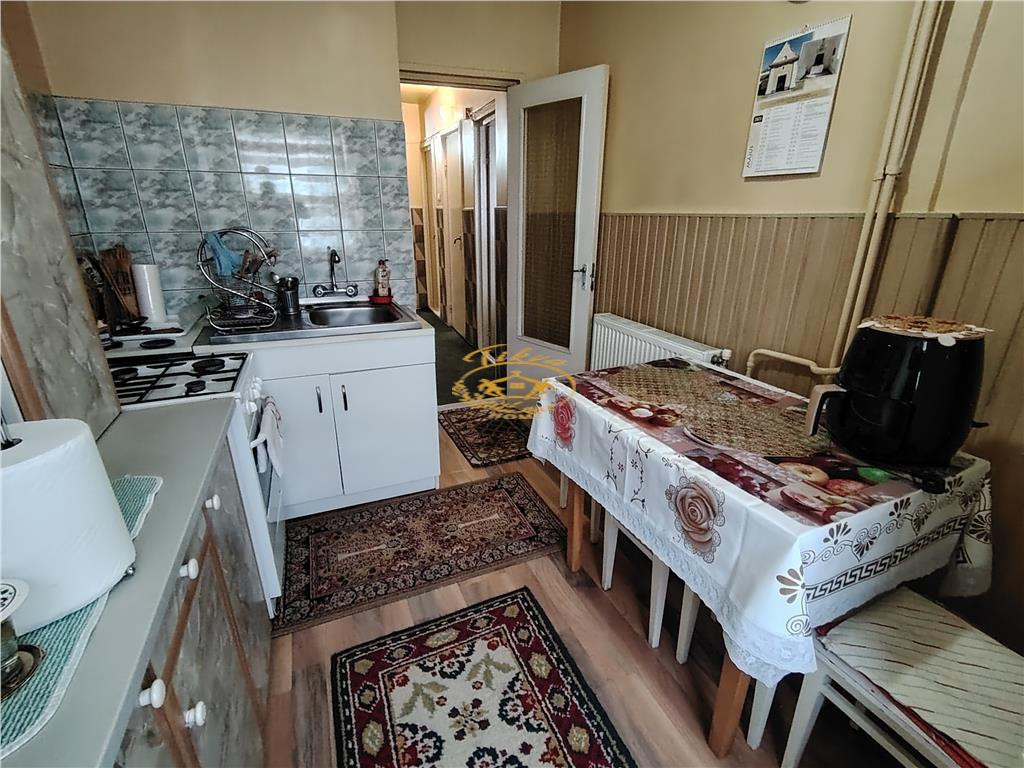 De vanzare apartament cu 4 camere in Mun. Gheorgheni (Car. Bucin 17/B), jud. Harghita, situat la etajul 3 al unui bloc cu regim de inaltime P 4 etaje, construit in 1981 din BCA, neizolat termic. Apartamentul are suprafata utila de 83,76 msup2; si este compus din 4 camere (3 cu balcon, din care 2 inchise), bucatarie, camara, 2 bai, hol, debara. Cele trei balcoane au suprafata totala de 13,89 msup2;. Apartamentul dispune de o boxa de cca. 10 msup2; in privnita. Datorita caracteristicilor sale, apartamentul este o alegere excelenta pentru familiile cu mai multi copii. Este partial renovat, dar poate necesita renovari suplimentare in functie de preferinte. Finisaje si dotari: bull; zidarie si compartimentari din BCA bull; usa de intrare din lemn bull; usi interioare din lemn bull; in 2 camere si bucatarie ferestre din PVC cu termopan, in alte 2 camere ferestrele originale din lemn bull; pereti: vopsea lavabila in camere si in hol; faianta si vopsea lavabila in bai; vopsea lavabila, faianta si lambriu in bucatarie bull; podele: parchet laminat in 2 camere si in bucatarie, parchetul original din lemn masiv si mocheta in alte 2 camere; gresie in bai; beton si mocheta in hol. Icirc;ncalzirea apartamentului este asigurata de la reteaua publica de termoficare a orasului. Apartamentul se vinde mobilat, fara aparatele electrocasnice. Pret: 73.900 EUR - negociabil.