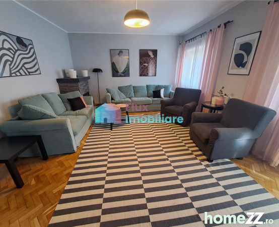 Flux Imobiliare va propune spre inchiriere apartament cu 4 camere situat la etajul 1 al unei vile tip duplex din zona centrala. Vila este compusa din parter si etaj, ambele niveluri avand intrari separate.