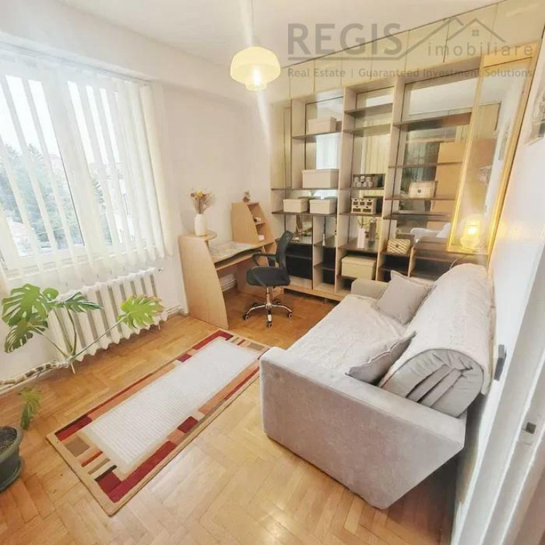 ID: 6270 Regis Imobiliare va propune spre inchiriere un apartament de 4 camere decomandat, cu o suprafata generoasa de 90 mp, mobilat modern si utilat complet, situat intr-o zona excelenta - Centrul Civic, la doar 3 minute de mers pe jos de AFI Mall. Caracteristice apartamentului: - Living luminos si spatios, dotat cu semineu si zona de relaxare, - 2 dormitoare cu pat matrimonial, - 1 camera amenajata ca birou, ideala pentru munca remote, prevazuta cu canapea extensibila, - 2 bai moderne, recent renovate, cu finisaje premium, - Bucatarie complet utilata, incluzand electrocasnice, tacamuri, pahare si ustensile pentru gatit. - Centrala termica proprie pentru confort sporit, - Loc de parcare inclus. Locatie: - Centrul Civic, 3 minute de mers pana la mall AFI - statii de autobuz spre toate punctele de interes, - Scoli si gradinite de top, Liceul Mesota, Universitate, - Piata agroalimentara in apropiere, - Acces imediat spre gara, Centrul Istoric si Mall Coresi, - In apropiere sunt banci, magazine, restaurante, Tribunalul Brasov, etc. Apartamentul este ideal pentru o familie care isi doreste un spatiu modern, bine compartimentat, aproape de centrul orasului si facilitati importante. Conditii de inchiriere: - Inchiriere pe minim 1 an. - Nu se accepta fumatori, - Nu se accepta animale de companie. Pret: 750 euro/luna 1 luna garantie. La inchiriere se plateste un comision de 50% din chiria pe prima luna TVA, o singura data. Va asteptam cu drag la vizionare.