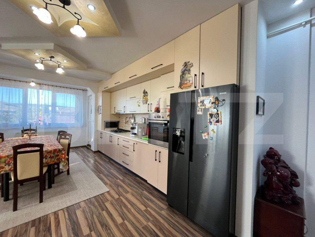 Blitz ofera la vanzare un apartament deosebit de 4 camere organizat pe doua nivele, la inceputul strazii Cetatii, la 2 minute de parcul din Floresti si 4 km de intarrea in Cluj-Napoca. Zona este una foarte linistita si aerisita, zona cu case, aflata la doi pasi de mijlocele de transport in comun si de magazine. Apartamentul se afla la etajul 2 al unui imobil cu 2 nivele, constructie 2014, suprafata utila fiind de 135 mp. Compartimentarea este bine gandita, avand 3 dormitoare (doua sus, unu jos), living open space cu bucatarie, 1 baie, hol, balcon, 2 spatii de depozitare in bucatarie, 2 dressinguri , si spatiu mare de depozitare de-a lungu celor 2 camere de la etaj. Se vinde mobilat utilat, iar ca dotari suplimentare amintim centrala termica , aer conditionat, videointerfon. Apartamentul detine si un loc de parcare la pretul de 6000 de euro. Va asteptam la o vizionare! Cod ofertă / ID BLITZ: P154862 Id intern: P154862