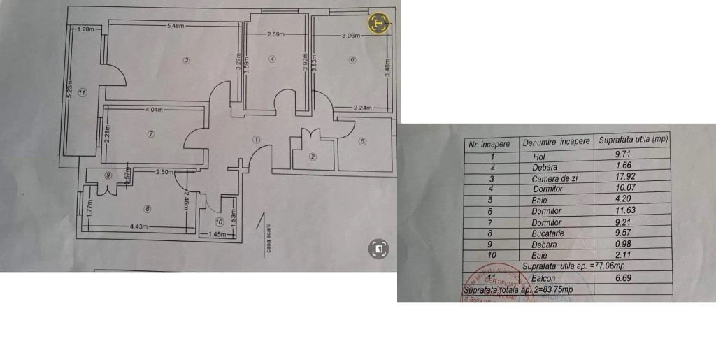 Cuprinde o suprafata utila de 77mp + balcon =83.75mp
