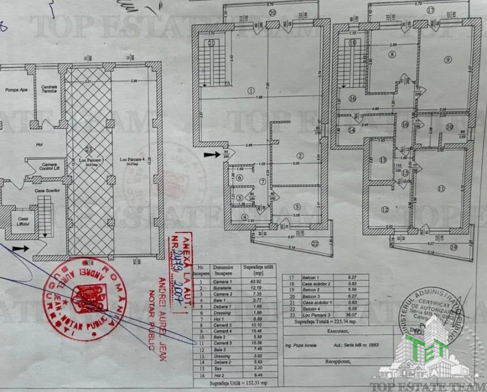 Excelenta prin experienta! Apartament Duplex 5 Camere | Herastrau ndash; Nordului | 2 Locuri de Parcare | Iti propun spre vanzare un apartament tip duplex, luminos si spatios, situat intr-un imobil solid din anul 2007, amplasat in una dintre cele mai cautate zone ale Capitalei ndash; Herastrau, Nordului. Proprietatea se afla la etajele 2 si 3, avand o scara interioara eleganta si o compartimentare excelenta. - Suprafata utila: 152,31 mp 4 balcoane: 22,7 mp in total - 2 locuri de parcare in garaj ndash; incluse in pret Nivelul 1 ndash; Zona de zi amp; functionalitate Bucatarie complet mobilata si utilata Living generos cu zona separata de dining Grup sanitar Birou ideal pentru lucru de acasa Camera dedicata pentru spalatorie Nivelul 2 ndash; Zona de noapte amp; confort Hol cu dressing generos Doua dormitoare, fiecare cu dressing propriu, deservite de un grup sanitar Dormitor matrimonial cu dressing dedicat si grup sanitar privat - Compartimentare ideala pentru o familie - Finisaje de calitate - Zona premium, la cativa pasi de Parcul Herastrau, restaurante, scoli si puncte de interes ID intern: TET0021863 Tranzactioneaza cu noi si primul transport de mobila este gratuit ! ( In Bucuresti si Ilfov)