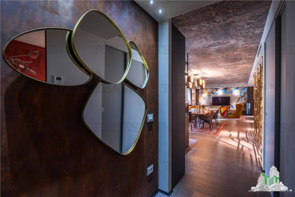 Excelenta prin experienta! Va propunem un apartament exclusivist de 5 camere, situat intr-una dintre cele mai prestigioase zone rezidentiale din Bucuresti ndash; Primaverii. Proprietatea se remarca prin suprafete generoase, compartimentare echilibrata si un spatiu exterior exceptional, rar intalnit in aceasta zona. Apartamentul are o suprafata utila de 205 mp si o suprafata totala de 418 mp. Compartimentarea este ideala pentru un stil de viata modern si rafinat, incluzand un living amplu si luminos, trei dormitoare dintre care doua dormitoare matrimoniale cu dressing propriu si un birou. Zona de zi beneficiaza de deschideri largi catre exterior, apartamentul avand doua balcoane cu o suprafata totala de 21 mp si o gradina privata impresionanta de 188 mp, un adevarat refugiu urban, perfect pentru relaxare, socializare sau amenajare peisagistica deosebita. In pret sunt incluse 4 locuri de parcare situate in subteran, oferind un nivel ridicat de confort si siguranta. Proprietatea se adreseaza celor care cauta spatiu, intimitate si exclusivitate, intr-un cadru select, cu acces rapid catre parcuri, restaurante de top, scoli internationale si principalele zone de interes ale orasului.