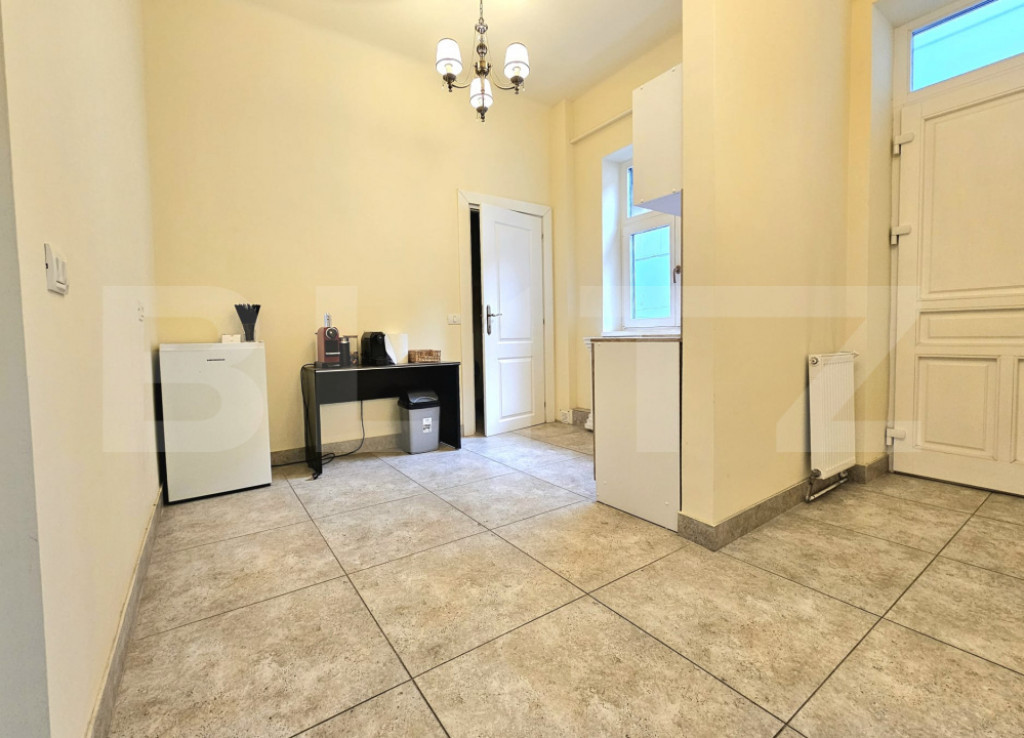 Blitz vă prezintă pentru închiriere un apartament cu 2 camere, semidecomandat, situat la etajul 2/2 într-o clădire istorică bine întreținută. Apartamentul este complet renovat și beneficiază de încălzire de la Colterm prin calorifere. Locuința dispune de o chicinetă, spațiu de depozitare și două camere spațioase, fiecare având aproximativ 20 mp utili. Suprafața utilă totală este de 65 mp, fiind ideală pentru desfășurarea activităților de birou. Poziționarea ultracentrală oferă acces facil către principalele puncte de interes ale orașului. Dacă doriți să vă desfășurați activitatea într-o zonă bine conectată, într-o clădire istorică bine întreținută, vă așteptăm cu drag la o vizionare! Cod ofertă / ID BLITZ: P168308 Id intern: P168308