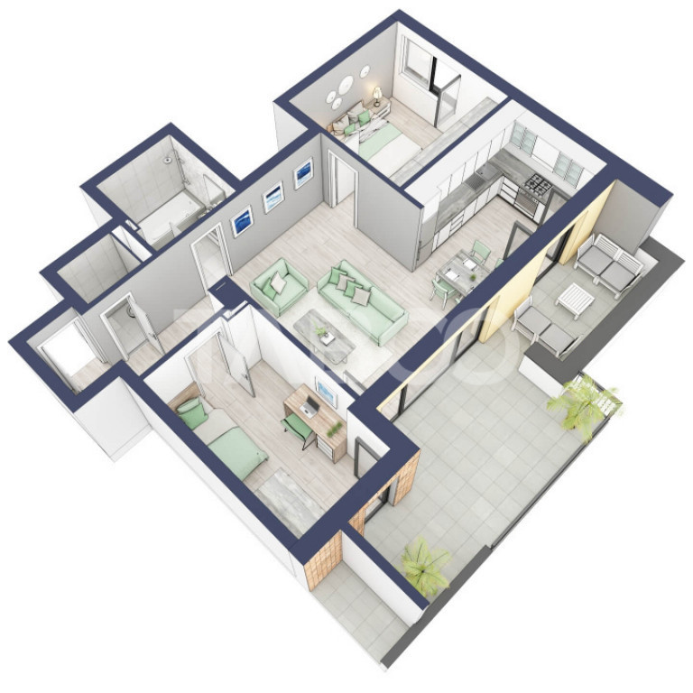 Apartament 66 mp utili 3 camere 2 bai etaj 3 in bloc cu lift