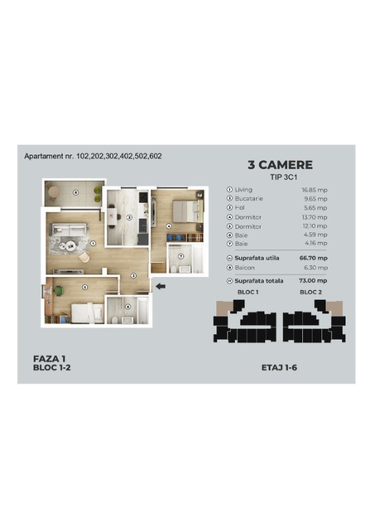 Apartament |73 m²| 3 camere, Bucuresti-Ilfov / Berceni *Caracteristici Principale:* - Suprafață: 73 mp - Etaj intermediar - Regim de înălțime: Demisol, Parter, 7 etaje - Parter cu spații comerciale *Dotări și Facilități Premium:* - Încălzire în pardoseală pentru confort maxim - Kit aer condiționat inclus în preț pentru climă perfectă - Sistem video interfon pentru securitate sporită *Detalii Suplimentare:* - Design modern și finisaje de înaltă calitate în întregul complex - Lumină naturală generoasă și spații bine compartimentate în garsonieră - Zonă liniștită și sigură, ideală pentru relaxare și viață de calitate - Acces rapid la Metrou Berceni (linia albastră), facilitând mobilitatea în oraș *Disponibil si pentru achizitie prin credit ipotecar - 105.850Euro *Oportunitate Pentru Un Stil de Viață Modern și Confortabil!* Ideală pentru cei ce caută un cămin bine pus la punct într-o locație convenabilă, acestă garsonieră reprezintă o investiție în confortul și siguranța viitorului tău locuinței. Contactează-ne pentru mai multe detalii și programarea unei vizionări. 0739 922 872 Elena Mache