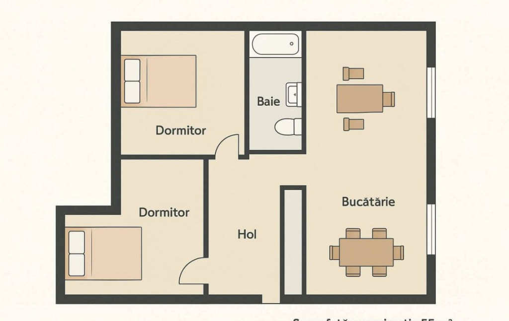 Suprafața utilă 55 m²