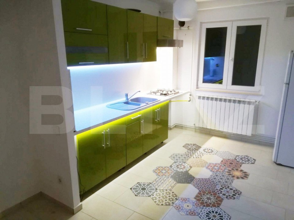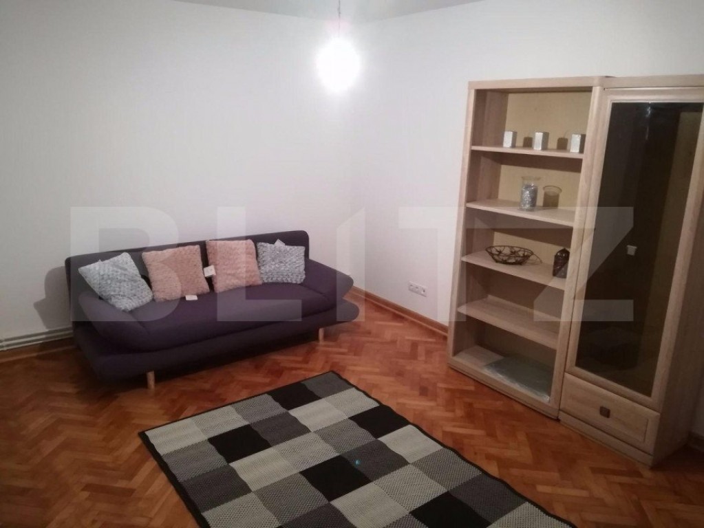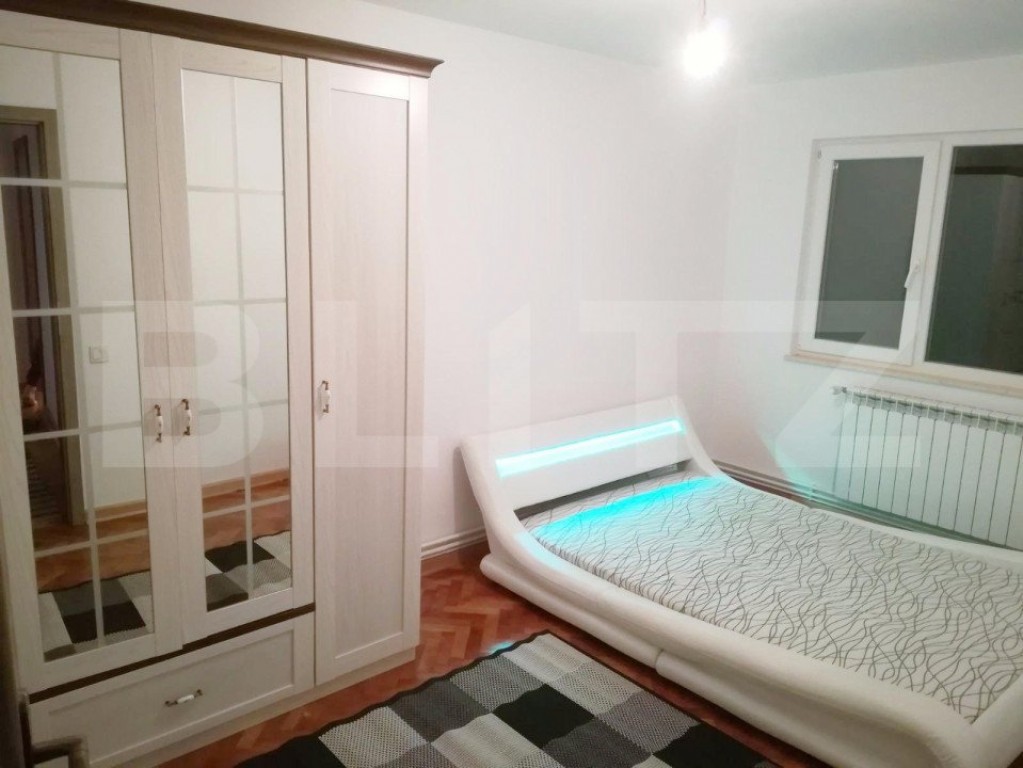 Blitz iti propune un apartament cu 3 camere complet mobilate si utilate, ce reuseste sa impresioneze prin folosirea stilului clasic reinterpretat, dispus in eleganta si functionalitate. Apartamentul este situat in cartierul Gheorgheni, zona strazii Constantin Brancusi, o zona in imediata apropiere de parc si doar cateva minute pana la Iulius Mall. Acesta este pozitionat la parterul unui imobil cu 4 nivele si dispune de o suprafata utila de 70 mp. Compartimentarea este decomandata, apartamentul fiind compus din: living, 2 dormitoare, bucatarie, baie si un balcon inchis. Apartamentul are un mobilier individualizat pentru fiecare zona, fapt ce-i confera o personalitate aparte. Spre exemplu, bucataria este imbracata intr-un verde indraznet si o ploaie de lumina ce cade pe blatul de lucru. Aceasta zona este elegant si practic amenajata cu frigider si plita dispusa cu hota. Dupa cum si un covoras ingenios intocmit din gresie cu imprimeuri traditionale. Livingul este amenajat aerisit, in culori calde, cu un mobilier dispus cu vitrine si mai multe spatii pentru depozitare, elementul de efect fiind si de aceasta data covorasul. Dormitarele pastreaza o amenajare aerisita. Dormitorul dotat cu pat matrimonial se remarca prin luminozitate si confort. Iar dormitorul cu pat pentru o presoana iese in evidenta prin forma deosebita si ledurile ce ofera o sursa de lumina in imediata apropiere. Beneficiaza de centrala termica proprie, geamuri termopan cu tamplarie din PVC si usa metalica la intrare. Vestea buna este ca proprietarul accepta animale de companie. Cod ofertă / ID BLITZ: P124879 Id intern: P124879