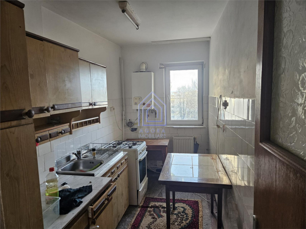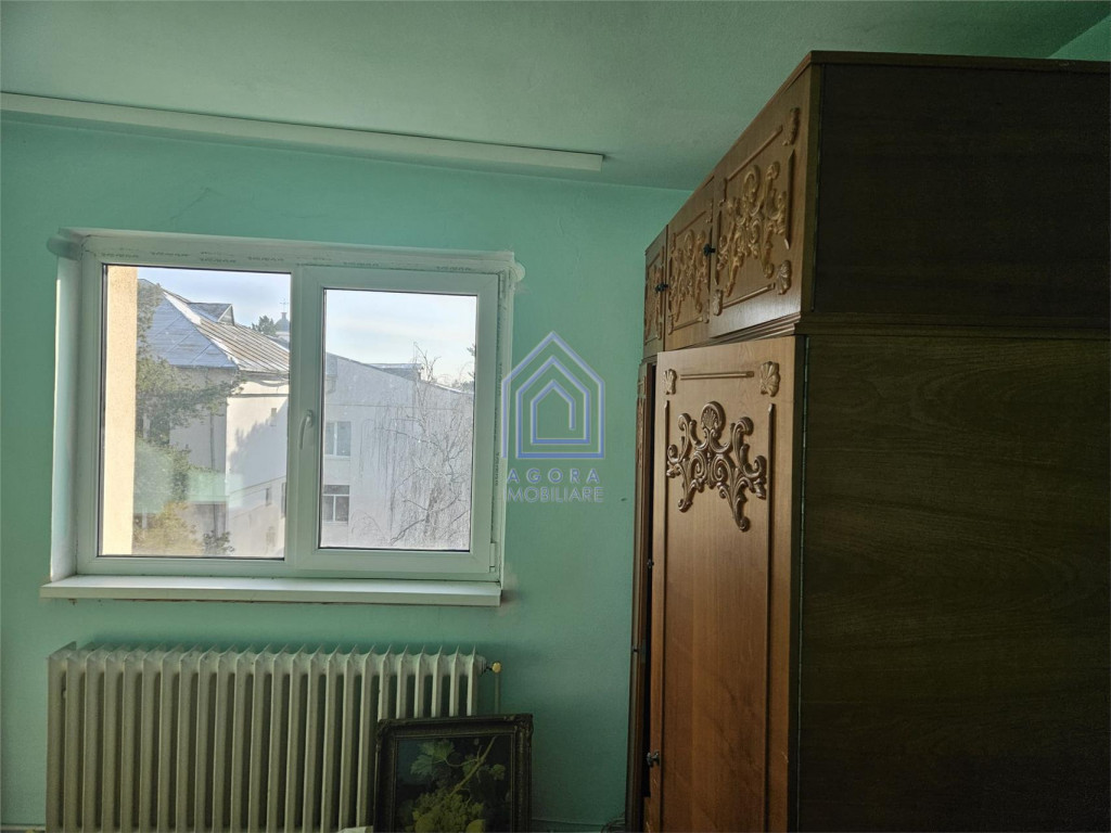 Agora Imobiliare ofera la vanzare un apartament cu 3 camere situat in zona centrala a orasului , intr-un bloc anvelopat, etaj 4 cu sarpanta. Hol spatios, 3 camere , baie cu geam , bucatarie si balcon. Apartamentul este dotat cu centrala termica si geamuri termopan.