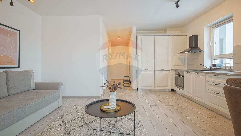 Vă propun spre închiriere un apartament cu 2 camere, situat la etajul 3 din 5, într-un imobil construit în 2021, amplasat într-una dintre cele mai noi faze ale cartierului Avantgarden 3, pe strada Lebedei nr. 27, bloc B70. Apartamentul este modern amenajat și foarte bine compartimentat, fiind ideal pentru un cuplu sau pentru o persoană singură care apreciază funcționalitatea și bunul gust. Încă de la intrare regăsim un dressing generos, perfect integrat, iar din holul spațios se face accesul separat către dormitor și către zona de living cu bucătărie open space. Livingul este luminos și oferă acces direct către balcon, un spațiu perfect pentru relaxare. Unul dintre avantajele majore ale acestui apartament este liniștea – orientarea către o zonă de case din imediata apropiere oferă intimitate și un ambient plăcut, departe de agitație. Locul de parcare și boxa de la demisol completează oferta, astfel încât sa ai tot confortul necesar. Este o locuință primitoare, echilibrată și armonios amenajată, în care veți simți atmosfera de „acasă” încă de la prima vizionare. Zona este ideală: ai parcul chiar peste stradă, iar în doar cinci minute ajungi la La Strada și în zona comercială a cartierului, unde găsești tot ce ai nevoie pentru un stil de viață comod. Pentru detalii suplimentare sau pentru a programa o vizionare, vă stau cu drag la dispoziție.