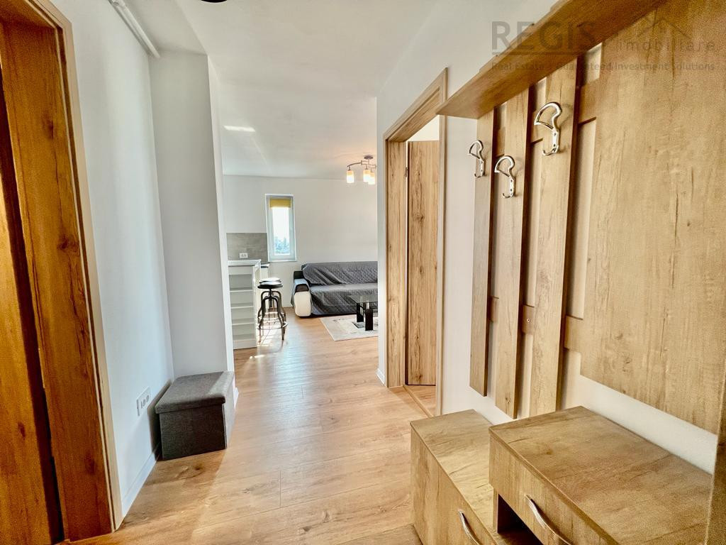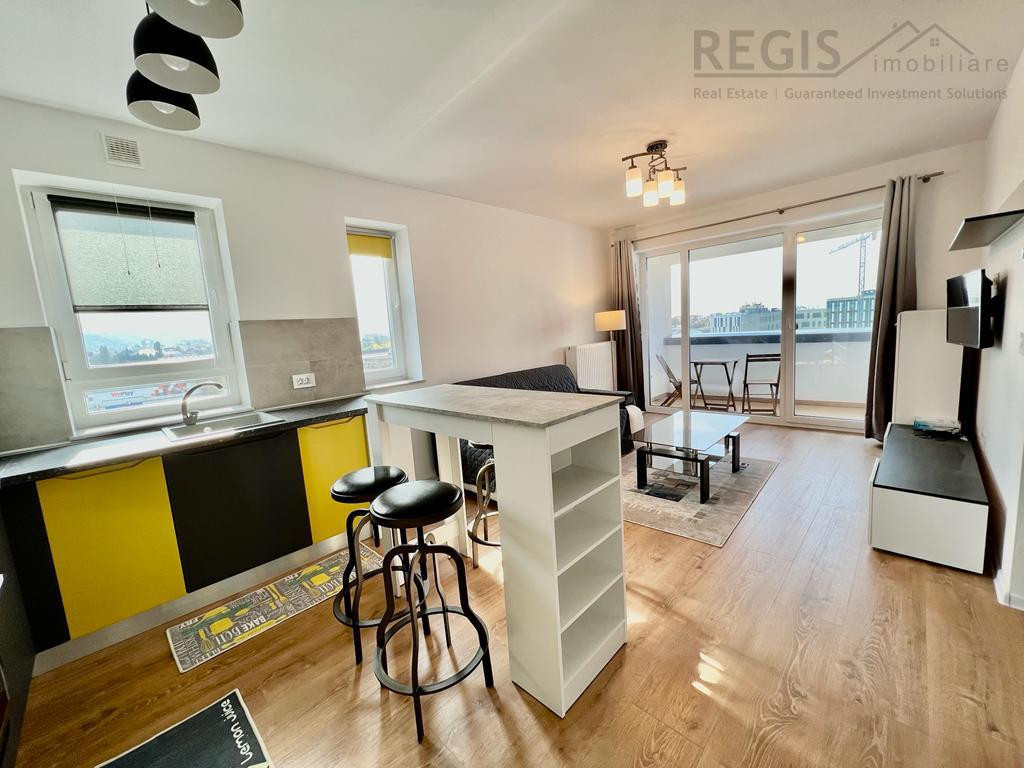 ID 6891. Regis Imobiliare va propune sper inchiriere un cochet studio situat in Cartierul Coresi Avantgarden Brasov, reper MALL CORESI. Cartier Coresi, locul ce a devenit Acasa pentru cateva mii de oameni, centrat pe confortul si stilul de viata modern , cu zone largi pietonale, parcuri, locuri de joaca, piste de role si bicilete de cativa km lungime. In proximitatea Parcului Tractorul, cu sala de fitness, mall, terase si magazine, practic un micro-oras in care ai totul la indemana. Proprietatea este atractiva datorita compartimentarii intime si confortabile, apartamentul fiind echipat si dotat cu tot ce este necesar vietii de zi cu zi. Pozitionat sud vest , la etajul 6 , te poti bucura de soare in cea mai mare parte a zilei, de asemenea ofera panorama deosenbita. Terasa de tip logie te asteapta sa iti bei aici cafeaua ca sa simti vibe-ul unui cartier in care nimic nu iti lipseste. Ideal pentru cupluri sau persoane singure, adepte ale unui stil de viata dinamic si mdern. In pret inclus si un loc de parcare. Comision agentie 50% tva