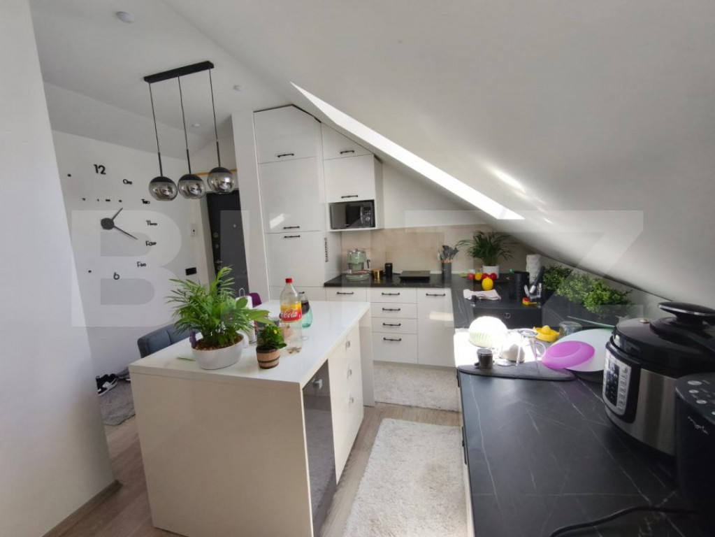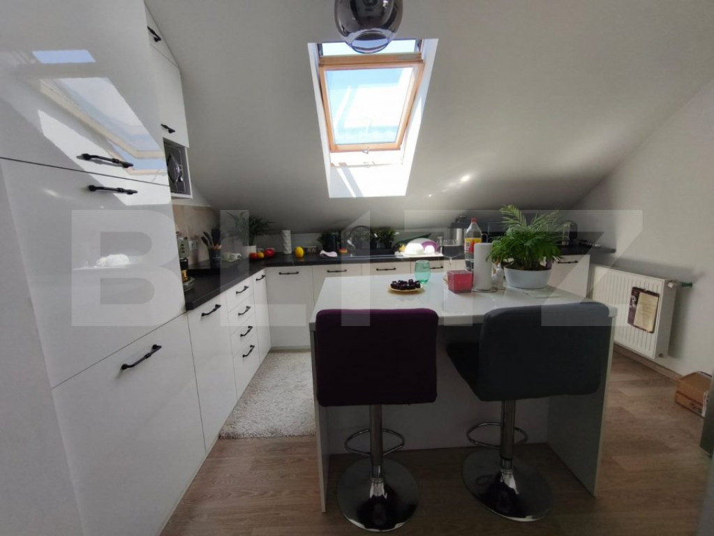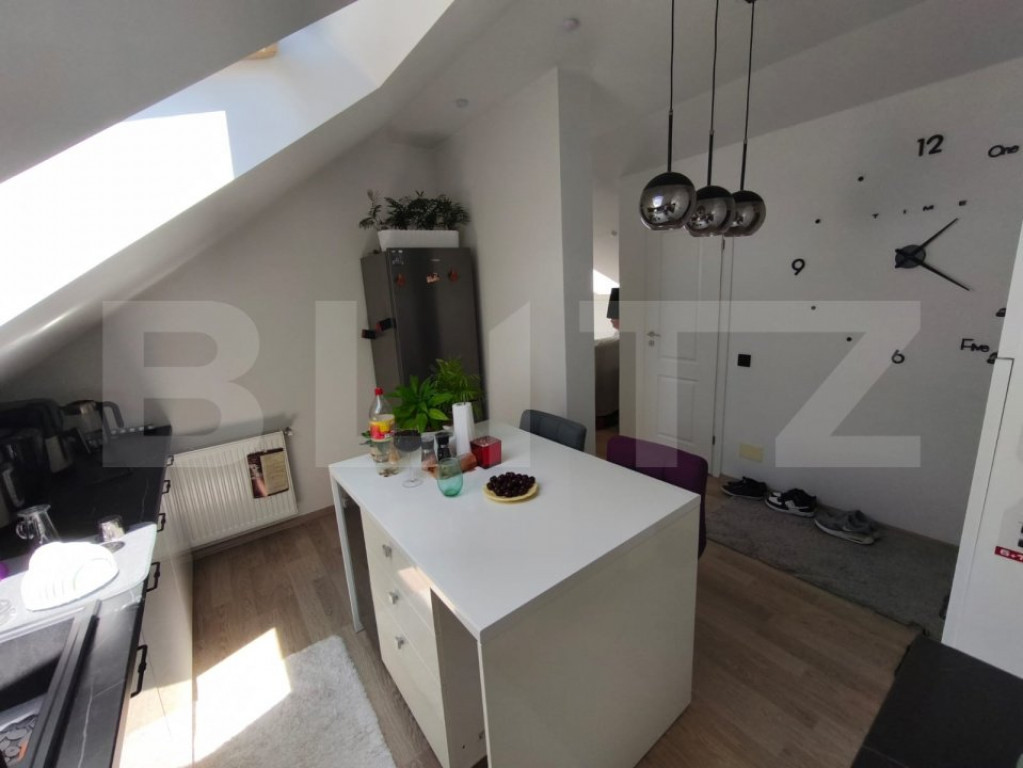 Blitz Imobiliare vă prezintă un apartament la mansardă, cu izolație, velux, foarte luminos și primitor. Un apartament în care vă puteți muta imediat sau îl puteți pune la închiriere din prima zi. Mobilier in stare excepțională, electrocasnice noi, totul îngrijit și curat. Situat pe strada Subcetate, aproape de pădure și totodată aproape de stațiile de transport în comun. Un dormitor open space, o baie foarte spațioasă și o bucatărie foarte luminoasă, totul dispus pe 46 de mp. Pentru orice detalii și pentru vizionări, nu ezitați să ne contactați. Cod ofertă / ID BLITZ: P147198 Id intern: P147198