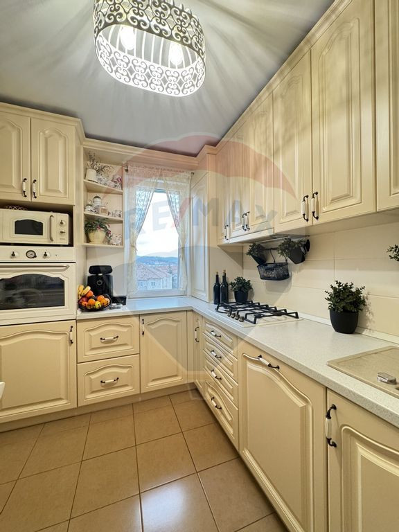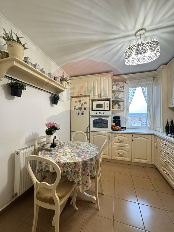 Apartamentul în care îți aduci doar hainele și începi o viață nouă! ???? Te invităm să descoperi un apartament cu 3 camere, perfect pregătit pentru tine și familia ta. Situat în cartierul Gura Câmpului, acest cămin combină confortul modern cu eleganța detaliilor – este locul în care nu trebuie să schimbi nimic, doar să te muți și să te bucuri de noua ta locuință! De ce să alegi acest apartament? Mobilă de calitate superioară: Sufrageria este mobilată cu piese din lemn masiv, care îmbină stilul clasic cu rezistența pe termen lung. Dotări premium: Bucătăria este complet utilată cu electrocasnice de top de la Bosch și Miele, pentru un plus de confort și eficiență. Instalații moderne: Apartamentul are o centrală termică nouă și o instalație electrică modernizată, oferindu-ți siguranță și costuri reduse de întreținere. Călduros și bine izolat: Situat la mijlocul blocului, apartamentul îți oferă confort termic excelent pe tot parcursul anului. Pod izolat și pivniță înscrisă în CF: Ai suficient spațiu pentru depozitare, astfel încât totul să fie bine organizat. Balcon spațios: Un loc perfect pentru relaxare sau pentru a savura o cafea în aer liber. Bloc bine întreținut, într-o locație excelentă Apartamentul este situat la etajul 4, într-un bloc cu acoperiș, într-o zonă liniștită și bine conectată. Ai aproape tot ce ai nevoie: școli, magazine, spații verzi și mijloace de transport. Acest apartament este pregătit să te primească cu brațele deschise. Tot ce îți mai lipsește sunt valizele!
