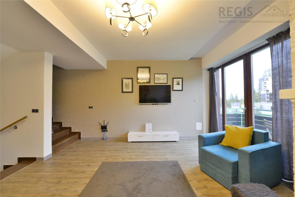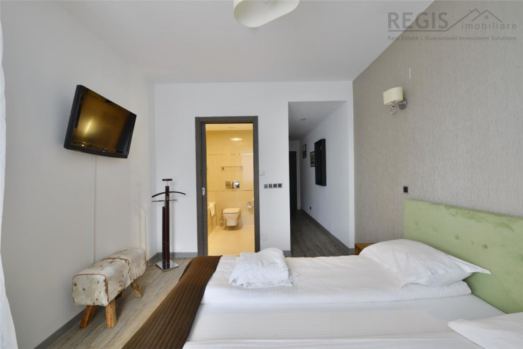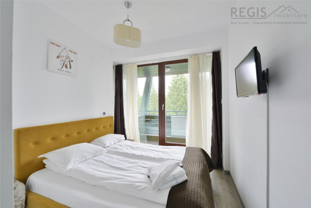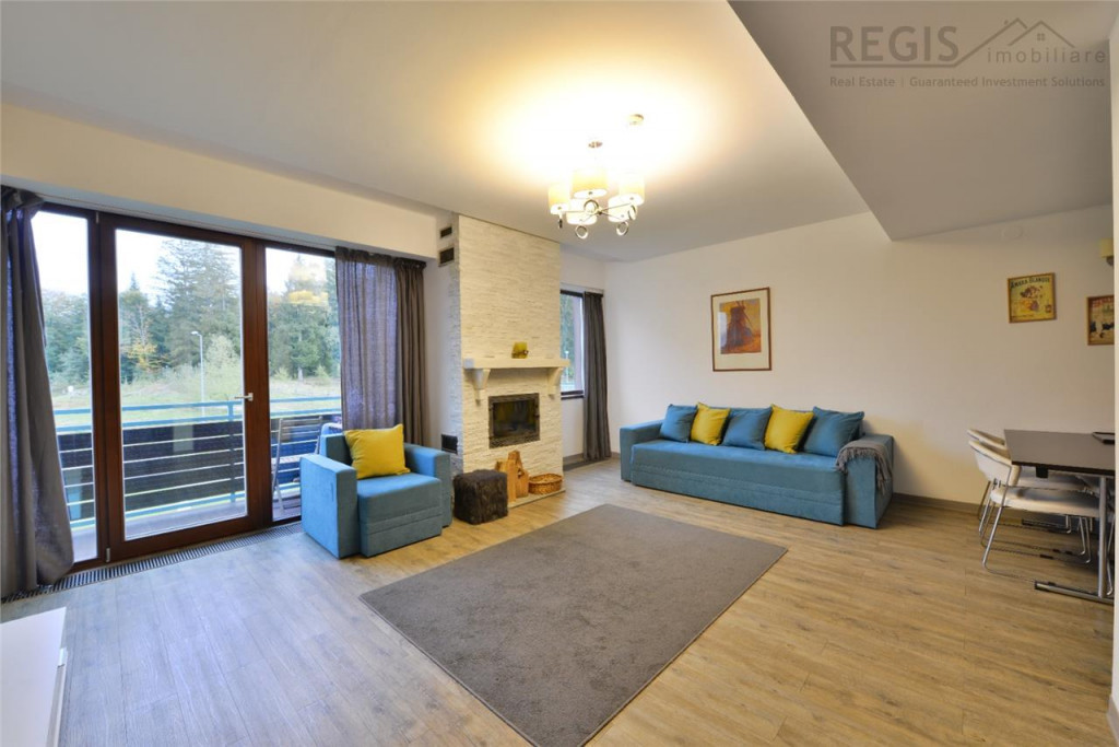 Regis Imobiliare va propune la vanzare Apartament exclusivist, situat in statiunea turistica Poiana Brasov, in complexul rezidential Silver Mountain. Resortul dispune de: sala de fitness, jacuzzi, piscina interioara, piscina exterioara infinity incalzita, sauna umeda si uscata), restaurant, club si 2 sali de conferinta. Fie ca doresti sa impletesti utilul cu placutul, sa obtii beneficii financiare considerabile prin exploatarea in regim hotelier si sa iti faci si tu concediile aici, fie ca dooresti sa iti bucuri viata locuind permnanent in inima muntilor dar si aproape de civilizatie, proprietatea aceasta poate fi tot ce ai visat. Verdele brazilor si zumzetul padurii te vor trezi de dimineata iar piscurile muntilor te vor incanta fie vara fie iarna. Apartamentul isi rasfata locatarii prin privelisti relaxante din fiecare camera si confort termic sporit. Cei 80 mp sunt armonios impartiti dupa cum urmeaza: - living; - 2 zone matrimoniale formate din dormitor, dresing si baie; - inca o baie ( in total 3 bai) - bucatarie; - holuri Proprietatea beneficiaza de doua terase generoase Apartamentul se vinde mobilat si utilat complet, totul fiind armonios imbinat, in culori calde si linii suave. Particularitati care te fac sa te simti minunat in acest apartament: - Usa metalica dotata cu incuietoare smart controlata de pe telefonul mobil; - Pardoseala Gerflor, respectiv placi ceramice in bai; - Incalzire cu ventiloconvectoare; - Geamuri termopan cu tamplarie de aluminiu; - Electrocasnice de ultima generatie; - Mobilier exclusivist de cea mai buna calitate - Semineul cu lemn natural sa iincalzeasca atmosfera pentru seri pitoresti si zapezi de poveste - Pereti interiori finisati cu vopsea lavabila. Pentru mai multe informatii si pentru a programa o vizionare, va rugam sa ne contactati. Aceasta oportunitate de a deveni proprietarul unui apartament exclusivist in mijlocul naturii la Complexul Silver Mountain este una pe care nu vreti sa o ratati! Loc de parcare subteran 15.000 Comision agentie ZERO euro