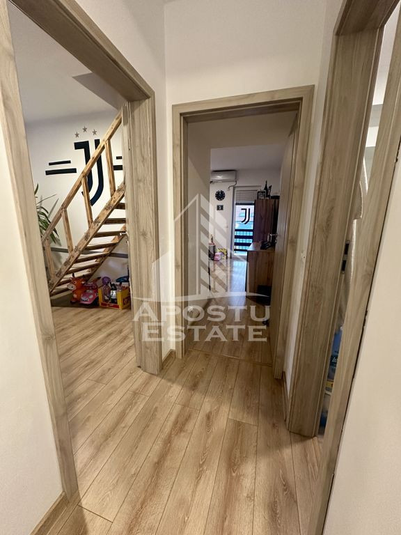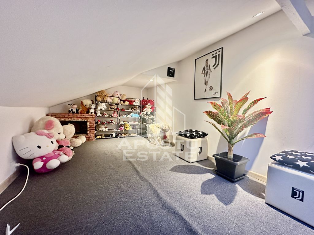 APOSTU ESTATE va ofera spre vanzare in exclusivitate un apartament cu 1 camera si bucatarie inchisa, etaj 3 din 3, avand pod propriu amenajat, situat in Giroc in zona Planetelor. Dispune de o suprafata de 38 mp utili + pod propriu trecut in CF de aproximativ 20 mp unde este amenajat un dormitor. Confortul termic se realizeaza cu ajutorul centralei proprii pe gaz cu incalzire in pardoseala dar si a climei. Geamuri tripan cu site. 1 loc de parcare acoperit trecut in CF. Compartimentare: - hol acces - bucatarie inchisa - dormitor - baie cu cada - pod amenajat - balcon Pretul este 72.000 euro usor negociabil Va asteptam cu drag la o vizionare! CP 2793864