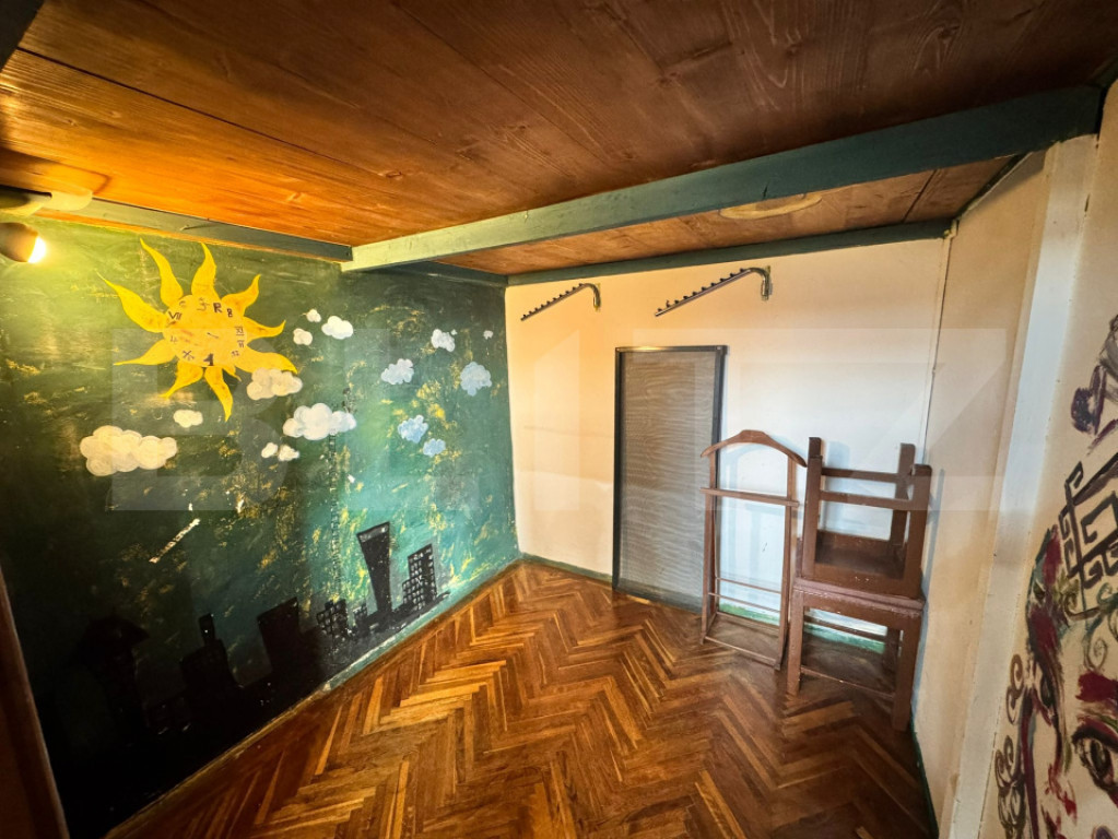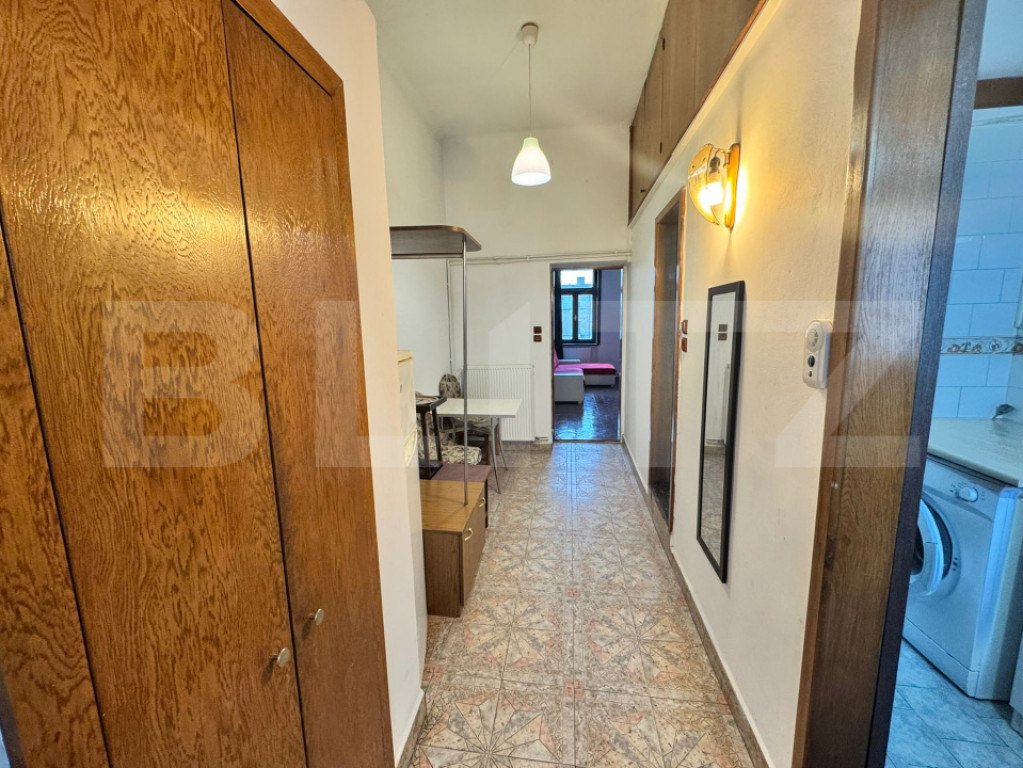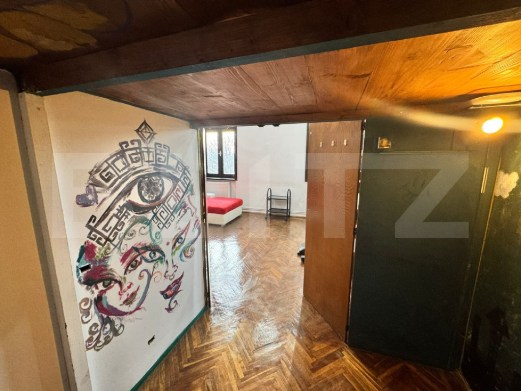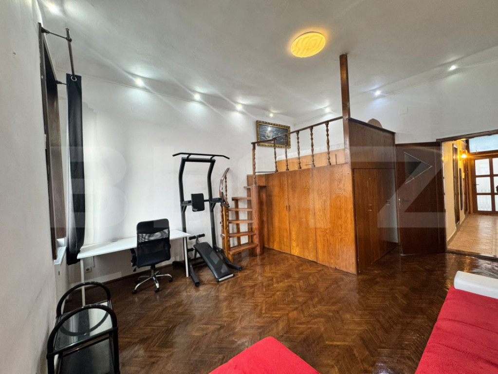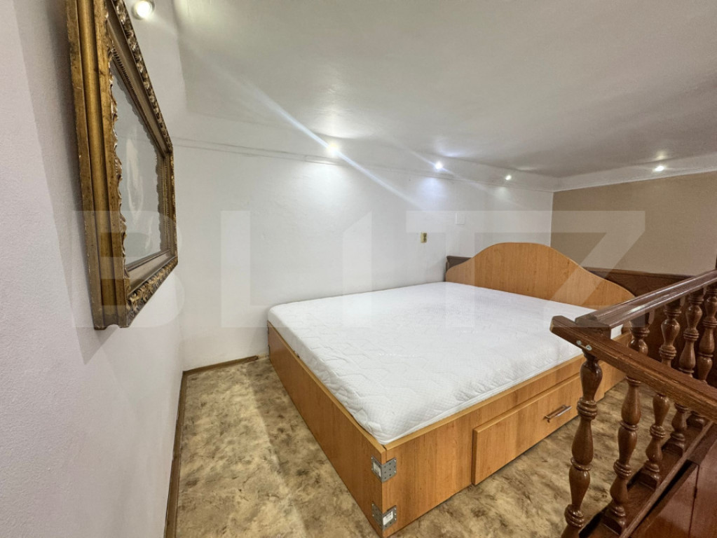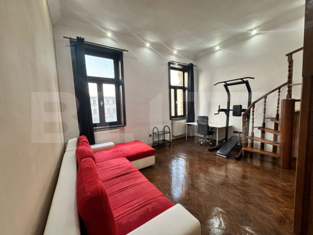 Blitz va propune spre vanzare apartament cu 1 cameră, situat într-o clădire istorică din cărămidă, în zona ultracentrală a Timișoarei – Unirii. Apartamentul are o suprafață utilă de 43 mp și este amplasat la etajul 2 din 2. Compartimentare: hol spațios cameră mare cu tavan înalt și zonă de tip supantă (dormitor la înălțime) bucătărie baie spațiu tehnic loc de depozitare generos Locuința este luminoasă și aerisită, având tavan înalt de aproximativ 4 m și vedere stradală. Păstrează parchetul original din lemn de stejar, bine întreținut, specific clădirilor istorice. Apartamentul dispune de încălzire proprie cu centrală termică pe gaz și se vinde mobilat și utilat (mașină de spălat, frigider, aragaz). Ideal atât pentru locuință proprie, cât și pentru investiție – închiriere pe termen lung sau regim hotelier, datorită poziției ultracentrale. Cod ofertă / ID BLITZ: P166362 Id intern: P166362