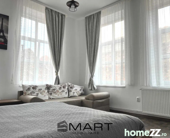 Smart Imobiliare propune spre inchiriere un apartament deosebit cu o camera, situat la etajul I al unei case in zona Ultracentrala a orasului.Suprafata utila de 40 mp se compune din bucatarie cu loc de servit masa, camera si baie.Apartamentul se inchiriaza complet mobilat si utilat cu obiecte de calitate, exact ca in imagini.Incalzirea se face cu centrala proprie si utilitatile sunt contorizate separat.Amplasat in zona Centrului Istoric, apartamentul se afla in apropierea tuturor obiectivelor importante ale orasului.