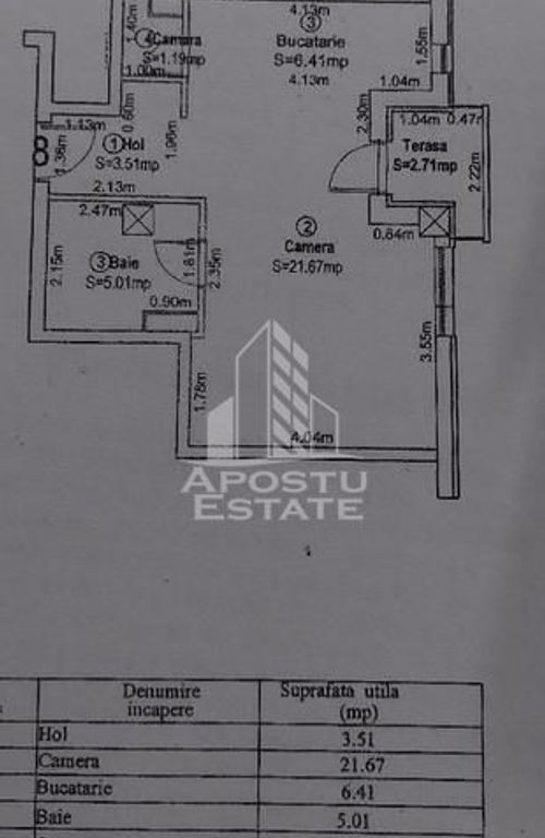 Apartamentul are o suprafata utila de 38mp+ balcon, compartimentat astfel:
