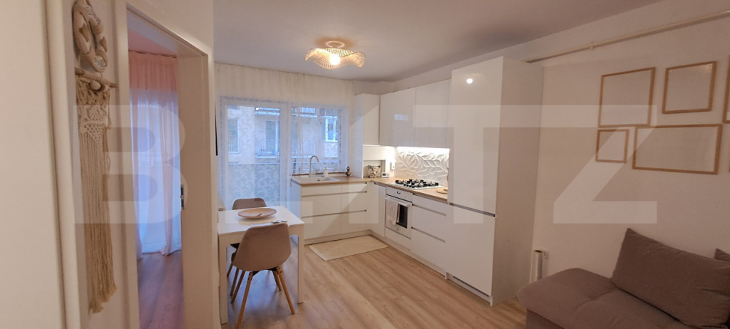 Blitz va ofera spre vanzare un apartament semidecomandat, cu 2 camere, mobilat si utllat premium, in zona strazii Porii, cu parcare exterioara inclusa in pret, intr-o zona linistita dar in acelasi timp aproape de toate punctele de interes din zona centrala: statii de transport in comun, supermarketuri, scoli ,gradinite,farmacii. Compartimentarea se prezinta astfel: living cu bucatarie open space cu iesire pe balcon, dormitor, la fel, cu iesire pe balcon, baie si balcon, Incalzirea se face cu centrala termica proprie si calorifere, usile interioare sunt Porta Doors, mobilier realizat la comanda, toate corpurile de iluminat sunt led, iar masina de spalat si combina frigorifica sunt incorporabile. Atentia la detalii si finisajele sunt vizibile de la intrare toate fiind premium. Cu orice detalii va stam la dispozitie, programati va acum la o vizionare si convingeti va singuri de calitatile apartamentului. Cod ofertă / ID BLITZ: P161082 Id intern: P161082