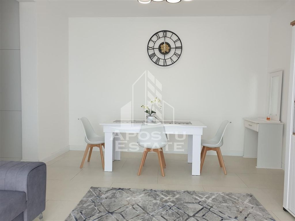 APOSTU ESTATE va propune spre inchiriere un apartament cu 2 camere, terasa generoasa si doua locuri de parcare in Dumbravita. Vecinatati: -Ikea -Profi Imobilul dispune de suprafata generoasa de 53 mp utili si este situat la etajul 3 din 3 al unui bloc nou cu acoperis si izolatie termica. Compartimentare: -Hol acces -Living open space cu bucatarie complet mobilata si utilata -Dormitor cu pat matrimonial -Baie cu geam si cada - terasa generoasa de 8 mp Confortul termic este realizat prin centrala proprie prin incalzire prin pardoseala si prin sistemul de aer conditionat. Se percepe o garanție de 500€ Va asteptam cu drag la o vizionare!