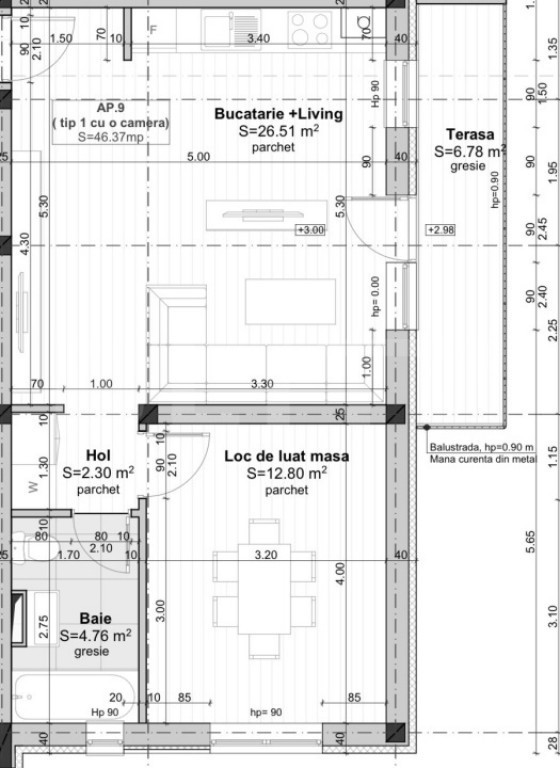 Apartament cu 2 camere, 47 mp utili, 7 mp balcon, Etaj 1, Gi