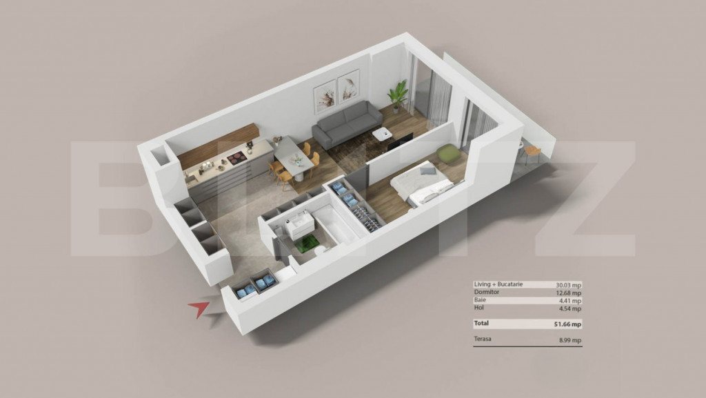 Blitz vă propune un apartament cu 2 camere, situat în ansamblul rezidențial Oxygen Residence – un proiect premium aflat în plină dezvoltare, localizat în zona Pieței Abator, una dintre cele mai bine poziționate și conectate arii din Cluj-Napoca. Poziția centrală a proiectului oferă acces rapid către Parcul Feroviarilor, Someș, centrul orașului, Gara Cluj-Napoca și multe alte puncte de interes – o combinație ideală între confort urban, conectivitate excelentă și liniște, într-un cadru cu potențial ridicat de apreciere. ???? Suprafață și compartimentare Locuința are o suprafață utilă de 52 mp și o compartimentare modernă și eficientă: -Living spațios cu acces la balcon -Dormitor luminos și aerisit -Bucătărie open-space -Baie generoasă -Hol cu spațiu pentru depozitare ???? Etaj 10 din 18 – vedere spectaculoasă spre Parcul Feroviarilor Apartamentul este situat la un etaj superior, beneficiind de o priveliște panoramică asupra Parcului Feroviarilor – o zonă verde în plină reamenajare urbană, ce va deveni un nou pol de relaxare și natură în oraș. Un adevărat privilegiu pentru locuire sau închiriere! ???? Predare la stadiul de semifinisat – libertatea de a personaliza Se predă la stadiul de semifinisat, permițându-ți să îți personalizezi fiecare spațiu exact cum îți dorești. Poți crea un cămin care reflectă stilul tău sau o proprietate optimizată pentru închiriere. ???? Finalizare estimată: sfârșitul anului 2025 Achiziția în această fază îți oferă un avantaj competitiv – atât din punct de vedere al prețului, cât și al potențialului de capitalizare până la momentul predării. ???? Ideal pentru: -Cei care își doresc o locuință într-un cartier modern, cu poziție centrală -Investitori care urmăresc randamente bune din închiriere sau revânzare -Persoane care vor un apartament personalizabil, cu view rar spre parc ???? Programează o vizionare sau contactează-ne pentru detalii suplimentare! Investește într-un apartament la înălțime, cu vedere spre una dintre cele mai frumoase zone verzi ale Clujului. Cod ofertă / ID BLITZ: P145750 Id intern: P145750