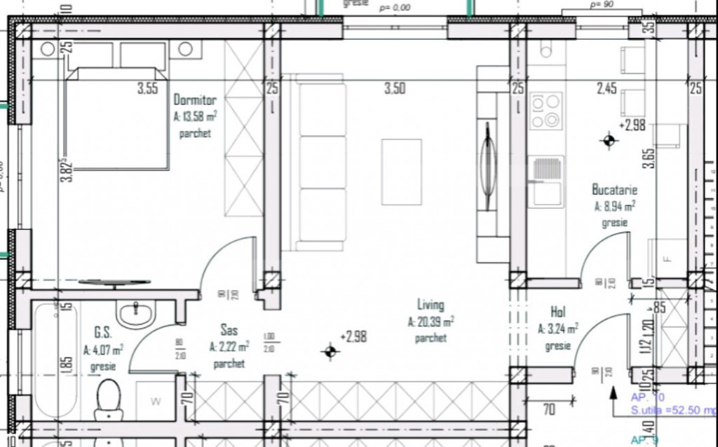 Suprafața utilă 52 m²
