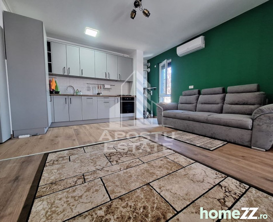 Spatiul este organizat in stil open space, luminos si aerisit, iar balconul generos ofera un loc ideal pentru relaxare sau pentru a savura o cafea dimineata.
