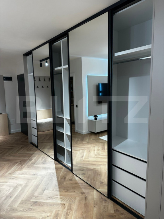 Blitz ofera spre vanzare un apartament de 2 camere cu CF gata de mutat în cartierul Iris langa viitorul mall RIVUS, intr-un bloc finalizat in 2025, intr-una din zonele in plina dezvoltare din Cluj Napoca, la cateva minute distanta de ceea ce va fi complexul Rivus si parcul Feroviarilor. Apartamentul se afla la etajul 2 din 7, are o suprafata de 58 mp si 11 mp terasa cu o compartimentare moderna. Este compus din living, bucatarie separata, dormitor, baie si hol cu spatii de depozitare cu posibilitate de recompartimentare in 2 dormitoare decomandate. In plus are o terasa acoperita de aproximativ 11 mp amenajata modern. Apartamentul se preda conform fotografiilor, finisat mobilat si utilat LUX. Pe langa finisajele si mobilatul modern acesta dispune de geamuri termopan triple de calitate, jaluleze, usa metalica la intrare, iar încălzirea este prin pardoseala pentru extra confort. Dispune si de un loc de parcare subteran cu CF la 20000 Euro. Preturile afisate sunt cu TVA INCLUS. Va asteptam la vizionare!