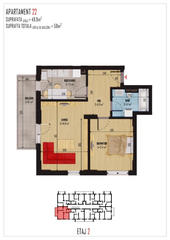 Suprafața utilă 58 m²