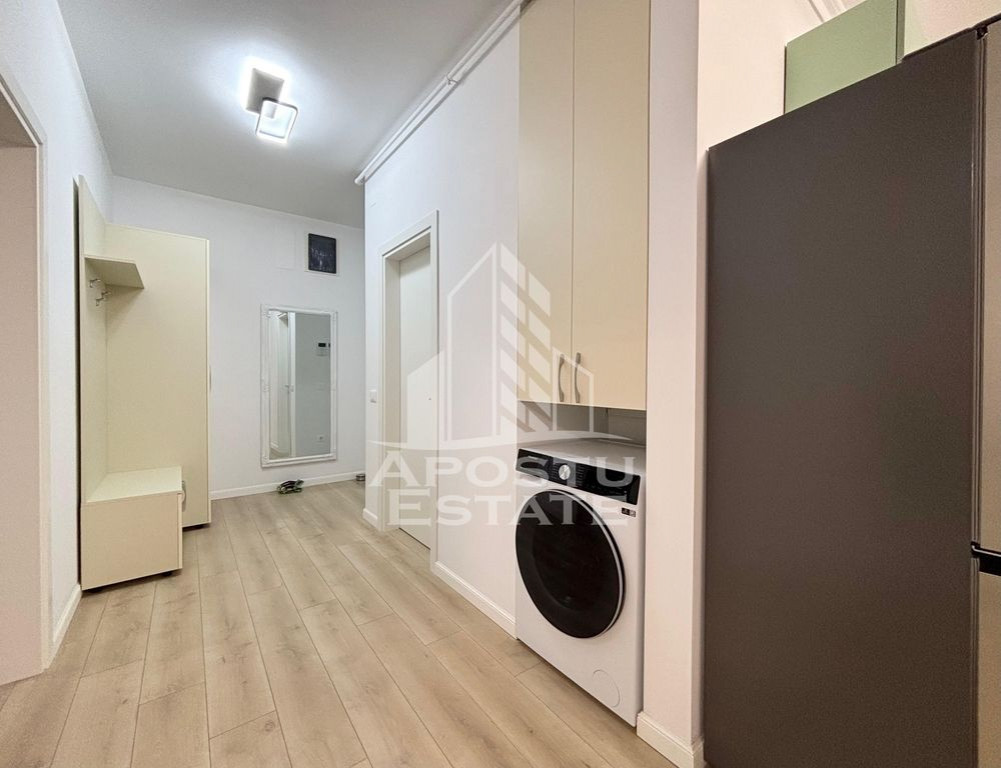 APOSTU ESTATE vă oferă un apartament modern cu 2 camere, la prima inchiriere, complet mobilat și utilat, situat în zona Aradului. Această locuință impresionează prin amenajarea practică, finisaje de calitate și confort, fiind ideală pentru cupluri sau persoane active care doresc acces rapid către principalele puncte de interes ale orașului. Suprafata utila: 52 mp Etaj: 3/5 Bloc cu lift Compartimentare: semidecomandata • Hol de acces • Living open space cu bucătăria • Dormitor • Baie cu cada • Balcon 6 mp Dotari si facilitati: • Centrala proprie cu incalzire prin pardoseala • Aer conditionat • Masina de spalat haine • Uscator de haine • Masina de spalat vase • TV • Apartament complet mobilat si utilat • Loc de parcare inclus Localizare: Zona Aradului – aproape de Auchan, Hornbach, Facultatea de Agronomie, statii de transport in comun și benzinării, cu acces rapid catre centrul orasului. Pret chirie: [550€] Garantie: o luna Disponibil imediat Nu se accepta animale de companie ID intern: CP2794454