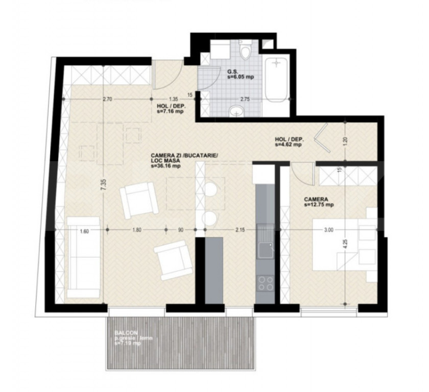 Blitz va propune spre vanzare un apartamtent cu 2 camere de 66.75 mp pe care il regasim la etajul 3 si etajul 1, 2 si 4 intr-o cladiere noua in constructie cu finalizare in a 2a parte a anului 2026. Apartamentele se predau semifinisate cu Instalatiile termice, electrice si sanitare trase pe pozitie, Sistem de incalzire in pardoseala REHAU, Pereti cu un strat de glet aplicat, Sapa, Tamplarie PVC REHAU, Usa metalica, Videointerfon, Balcoane si Terase finisate, Fatada placata cu caramida aparenta si Termosistem cu grad ridicat de fono si termoizolare. Locuri de parcare pentru biciclete amenajate în parkingul subteran, Parking subteran cu acces securizat, Lifturi silentioase, Supraveghere video, Spatiu verde amenajat. Apartamentul prezentat este compartimentant astfel: 1 Living cu Bucatarie spatios, Dormitor, Baie si un Balcon de 7.2 mp. Dispune si de loc de parcare in subteran la 12000 EURO + TVA. Avans minim 30% , se accepta plata prin Credit Bancar. Pretul afisat este pentru un AVANS DE 80%. LA PRETURILE AFISATE SE ADAUGA TVA. Cod ofertă / ID BLITZ: P153609 Id intern: P153609