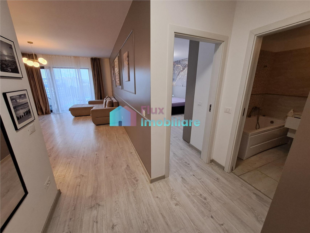 Flux Imobiliare va propune spre inchiriere un apartament cu 2 camere de lux situat in bloc nou in zona Universitatii si a primariei. Imobilul se afla la etajul 9, are suprafata de 56 mp, compartimentat astfel: living cu bucatarie open space, dormitor, hol, baie si balcon. Blocul dispune de 3 lifturi. Apartamentul este mobilat ultramodern, utilat cu electrocasnice de ultima generatie: plita pe gaz, cuptor electric, frigider, masina de spalat rufe, hota, televizor. Dotat cu centrala termica pe gaz. Se inchiriaza pe termen lung, minim 1 an. Chirie 500 euro, cu loc de parcare la subteran inclus in pret. Se percepe o garantie de 500 euro.