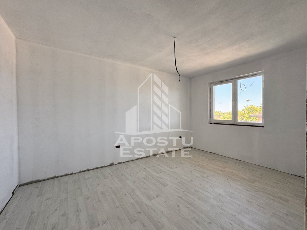 APOSTU ESTATE va propune spre vanzare, un apartament cu 2 camere in bloc nou, situat in Chisoda in zona pizzeriei Gioco, cu predare cel tarziu in luna ianuarie a anului 2026, aflat la etajul 3 retras al unui imobil cu 2E + 1E retras. Apartamentul este semidecomandat si are o suprafata utila de 52mp compartimentata astfel: - 1 dormitor - 1 living - 1 bucatarie inchisa - 1 baie cu geam - 1 terasa de 45mp, cu posibilitate de transformare in camera, existand utilitati pe pozitie, inclusiv incalzirea prin pardoseala - 1 balcon de 3.9mp. Confortul termic este asigurat prin intermediul centralei termice proprii, cu ajutorul incalzirii prin pardoseala. Imobilul este dotat cu geamuri tripane si tamplarie Salamander. Caramida zidurilor exterioare este de o grosime de 30cm, Porotherm, cu izolatie din vata bazaltica de 10cm. Zidurile interioare dintre apartamente si casa scarii sunt facute din caramida de 25cm cu izolatie din burete antifonic. Exista posibilitatea alegerii finisajelor, precum culoarea parchetului, culoarea gresiei si faiantei, usi, mobilier si utilitati baie, prin buget fix prestabilit, cu posibilitate de extindere buget pentru alte dorinte, suportat de catre cumparator. Imobilul este construit de catre un dezvoltator imobiliar cu renume si recenzii foarte bune, se poate verifica calitatea lucrarilor anterioare. Pretul afisat in anunt este aplicat in cazul platii integrale, iar in cazul unei plati prin credit bancar sau in 2 transe, pretul este de 150.000eur negociabil. Nu ezitati sa ne contactati pentru stabilirea unei vizionari sau alte detalii suplimentare.