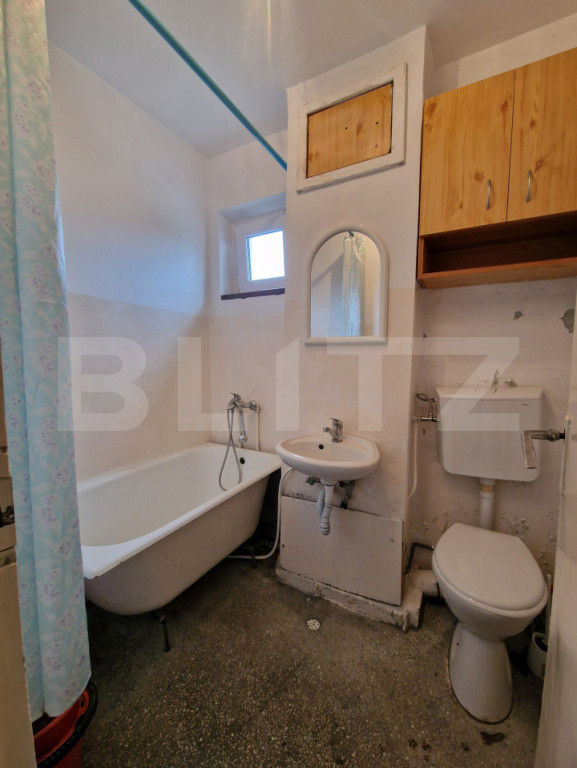 Blitz propune spre vânzare un apartament cu 2 camere, situat la etajul 3/4 al unui bloc reabilitat termic, într-o zonă foarte căutată, aproape de Casa Piraților, stațiile de autobuz, magazine si Mc Donalds. Proprietatea reprezintă o opțiune ideală de locuit sau ca investiție cu randament bun în regim de închiriere. Apartamentul are suprafata de 42mp si compartimentare semidecomandata astfel: hol, bucatarie separata, living, dormitor, baie cu geam si balcon. Apartamentul necesita renovare. Daca iti doresti un apartament cu potential intr-o zona accesibila, nu ezita sa ne contactezi! Cod ofertă / ID BLITZ: P159919 Id intern: P159919