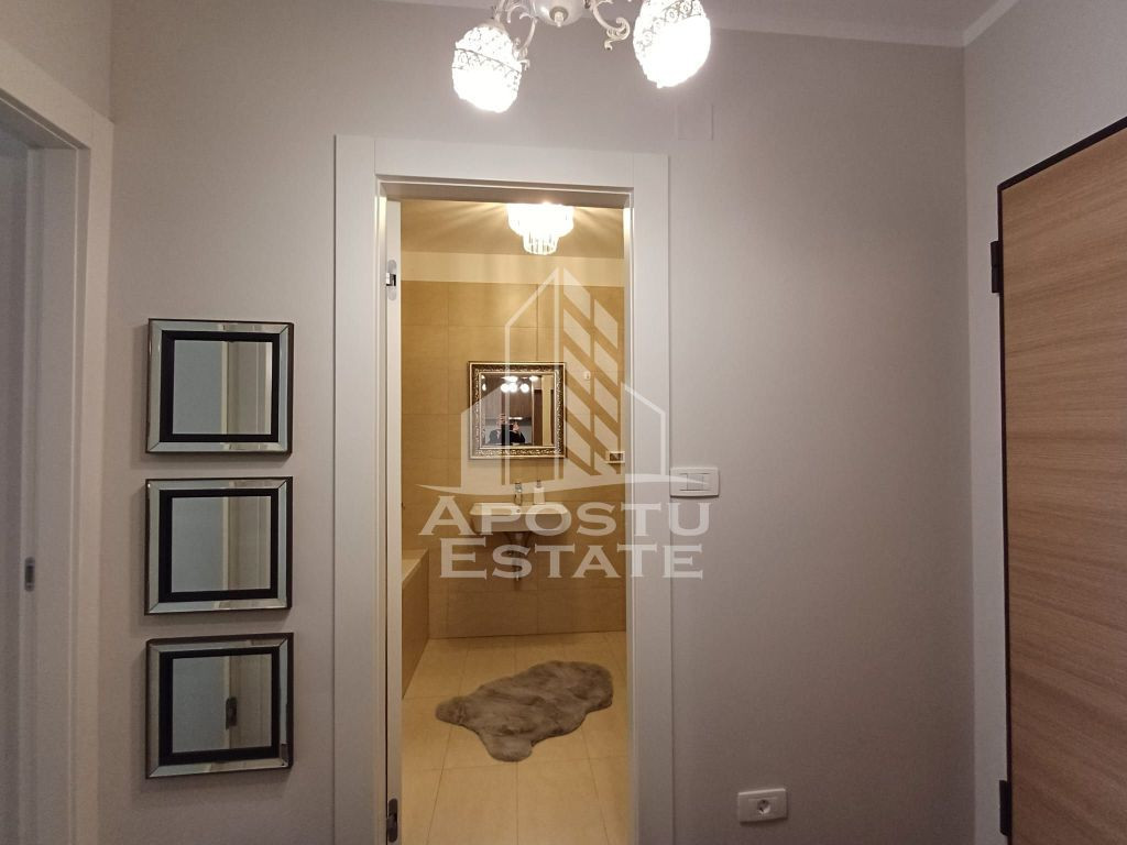APOSTU ESTATE va propune spre inchiriere un apartament spatios si elegant, cu 2 camere, situat intr-o zona linistita si bine conectata din Timisoara, ideal pentru familii sau persoane care doresc un spatiu generos si confortabil. Suprafata utila: 48 mp Compartimentare eficienta: Hol de acces Bucatarie complet mobilata si utilata, cu loc de luat masa Living luminos si spatios Dormitor matrimonial mobilat Baie principala cu cada Confort si facilitati: Centrala termica proprie pe gaz Aer conditionat Loc de parcare inclus in pret Apartamentul este complet mobilat si utilat Localizare: Zona Torontalului – liniste, acces facil spre oras, in apropiere de magazine, scoli si mijloace de transport in comun. Ideal pentru: Cupluri Profesionisti care lucreaza remote sau au nevoie de birou acasa Pret chirie: [500 euro] Garantia 800 euro care se poate achita in 2 transe Programeaza o vizionare! ID intern: CP1889257