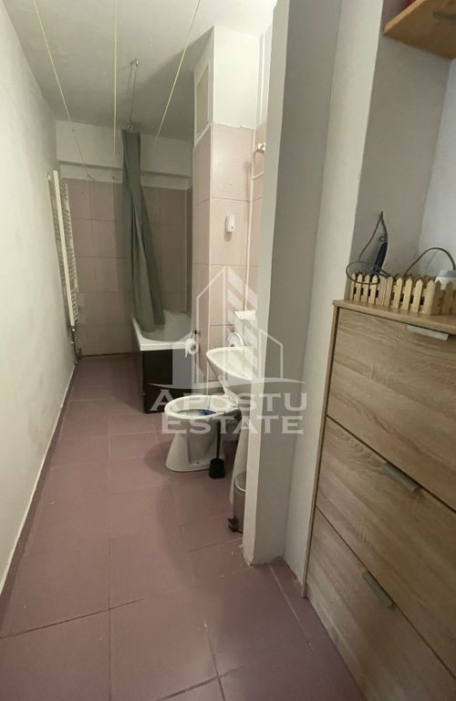 APOSTU ESTATE va propune spre inchiriere apartament cu 2 camere, situata intr-o zona linistita si bine conectata din Girocului ideal pentru cupluri sau persoane care doresc un spatiu generos si confortabil. Suprafata utila: 50mp Compartimentare eficienta: Hol de acces generos Bucatarie complet mobilata si utilata Dormitor Baie cu cada Confort si facilitati: Confortul termic se realizeaza prin Centrală proprie Etaj 3/4 Apartamentul este complet mobilat si utilat Localizare: Zona Girocului – liniste, acces facil spre oras, in apropiere de magazine si mijloace de transport in comun. Ideal pentru: Studentii Cuplu Pret chirie: 400€+ 400€ garantie Programeaza o vizionare! ID intern:CP2829897 !