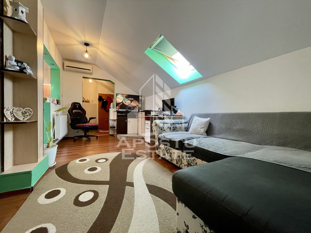 APOSTU ESTATE va propune spre vanzare un apartament cu 2 camere, centrala proprie si aer conditionat, situat in zona Steaua. Apartamentul este situat la etajul 5 din 5 (acoperis din tigla) si are o suprafata de 52 mp utili. Compartimentare: - Hol de acces - Bucatarie deschisa - Living spatios - Dormitor luminos - Baie cu cada Confortul termic este realizat prin intermediul centralei proprii pe gaz si a aparatului de aer conditionat. Apartamentul se va vinde complet mobilat si utilat. Dispune de pod 136 mp (in proprietate). Zona foarte linistita cu numeroase facilitati si puncte de interes precum: acces rapid si usor la mijloacele de transport in comun mall-ul Shopping City la cateva minute distanta piata si alte supermarket-uri in apropiere farmacii institutii de invatamant restaurante baruri cafenele si multe altele. Acceptam orice tip de credit bancar. Oferim consultanta si solutii financiare prin colaboratorii nostri. Va asteptam cu drag la o vizionare chiar si astazi! ID intern: CP2105359.