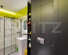 Un mare plus al acestui apartament este prezența unui dressing spațios, perfect organizat pentru depozitare eficientă — un detaliu rar întâlnit în apartamentele de acest tip.